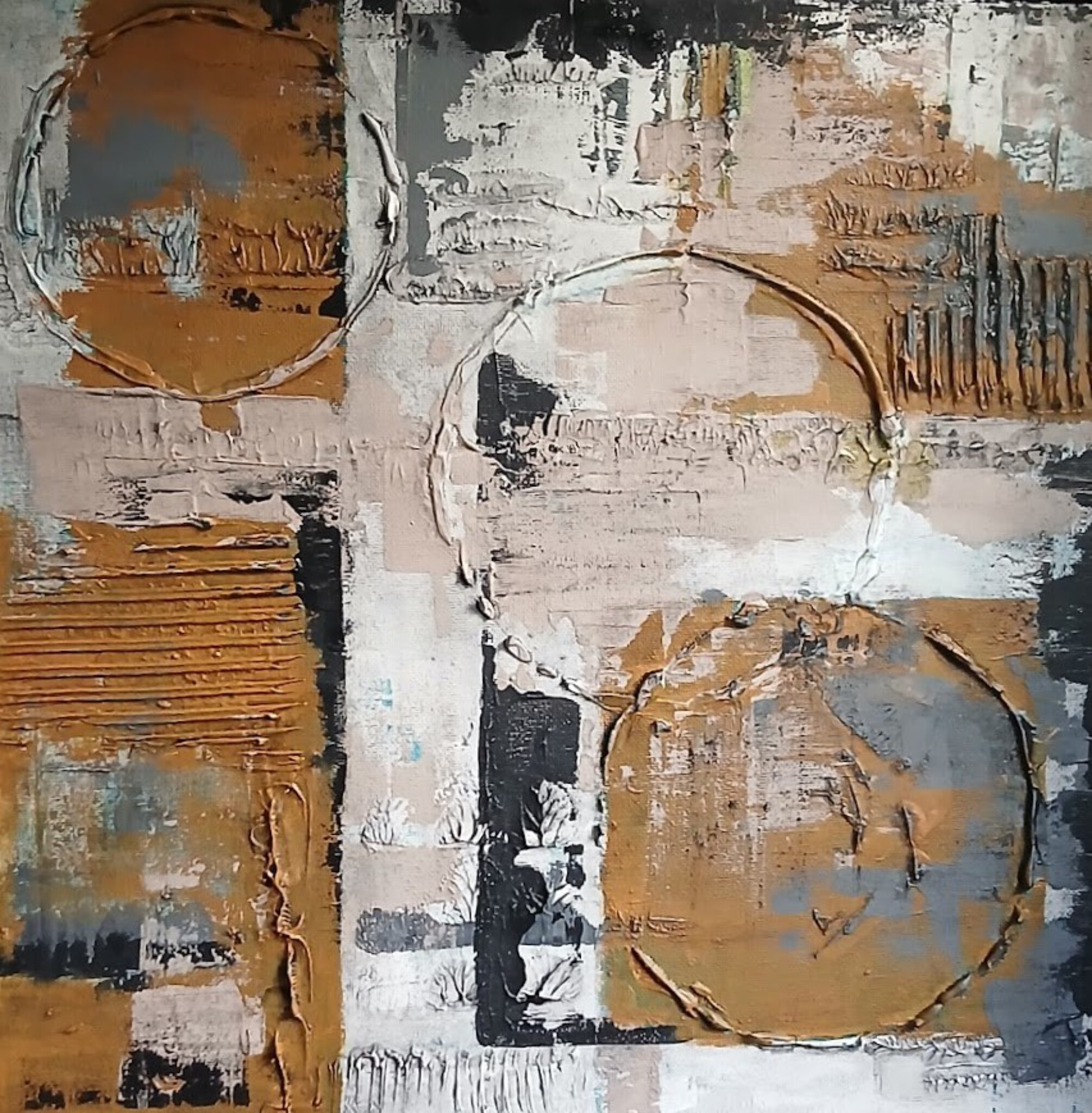 (1952) autodidact. Mijn werk is abstract, vaak monotoon van kleur, maar soms ook kleurrijk. Ik houd van gelaagdheid, met als resultaat een rijkdom aan diepte. Het totaal dient rust uit te stralen.