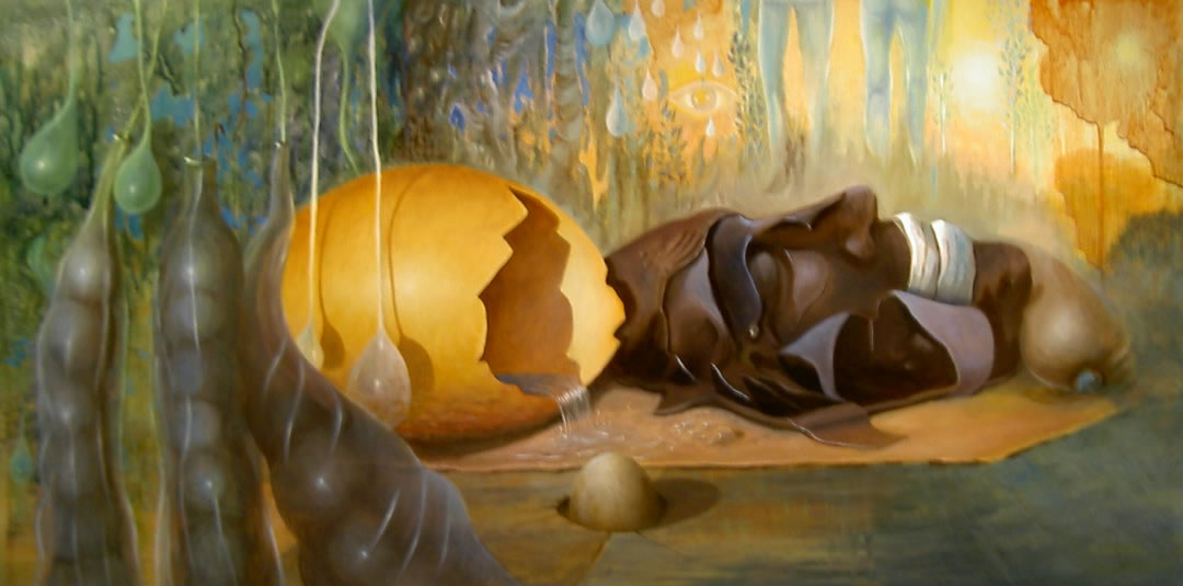 Het combineren van FANTASIE en WERKELIJKHEID, dit is het vertrekpunt van waaruit mijn schilderijen en tekeningen ontstaan. In een geheel eigen beeldtaal,vol symboliek. Symbolen zoals het oog, het meest fascinerende symbool wat gebaseerd is op een menselijk zintuig. De buik zetel van het leven. Het ei universeel symbool van het mysterie van de schepping. De zee als oerbron van leven, en water wat staat voor zuiverheid. Met deze symbolentaal breng ik mijn fantasie in beeld, realistisch geschilderd. Mijn schilderijen komen via een aloude techniek tot stand, met een onderschildering en vele lagen transparante olieverf waarmee ik de glacistechniek toepas. Hierdoor ontstaat er een rijkdom aan kleuren wat zo opvallend is aan mijn werk.