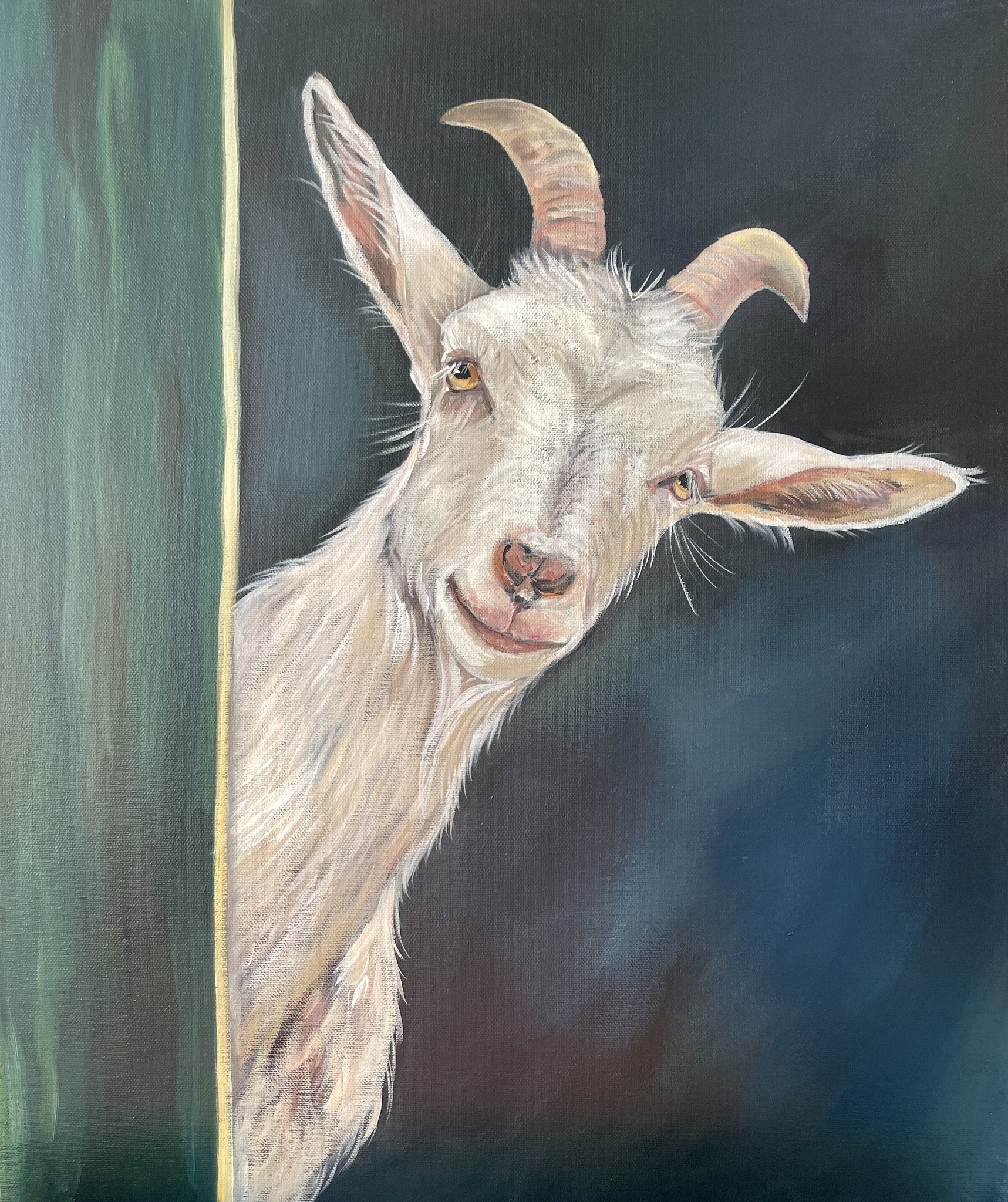 Schilderij Witte Boerderij Geit Bok Stal