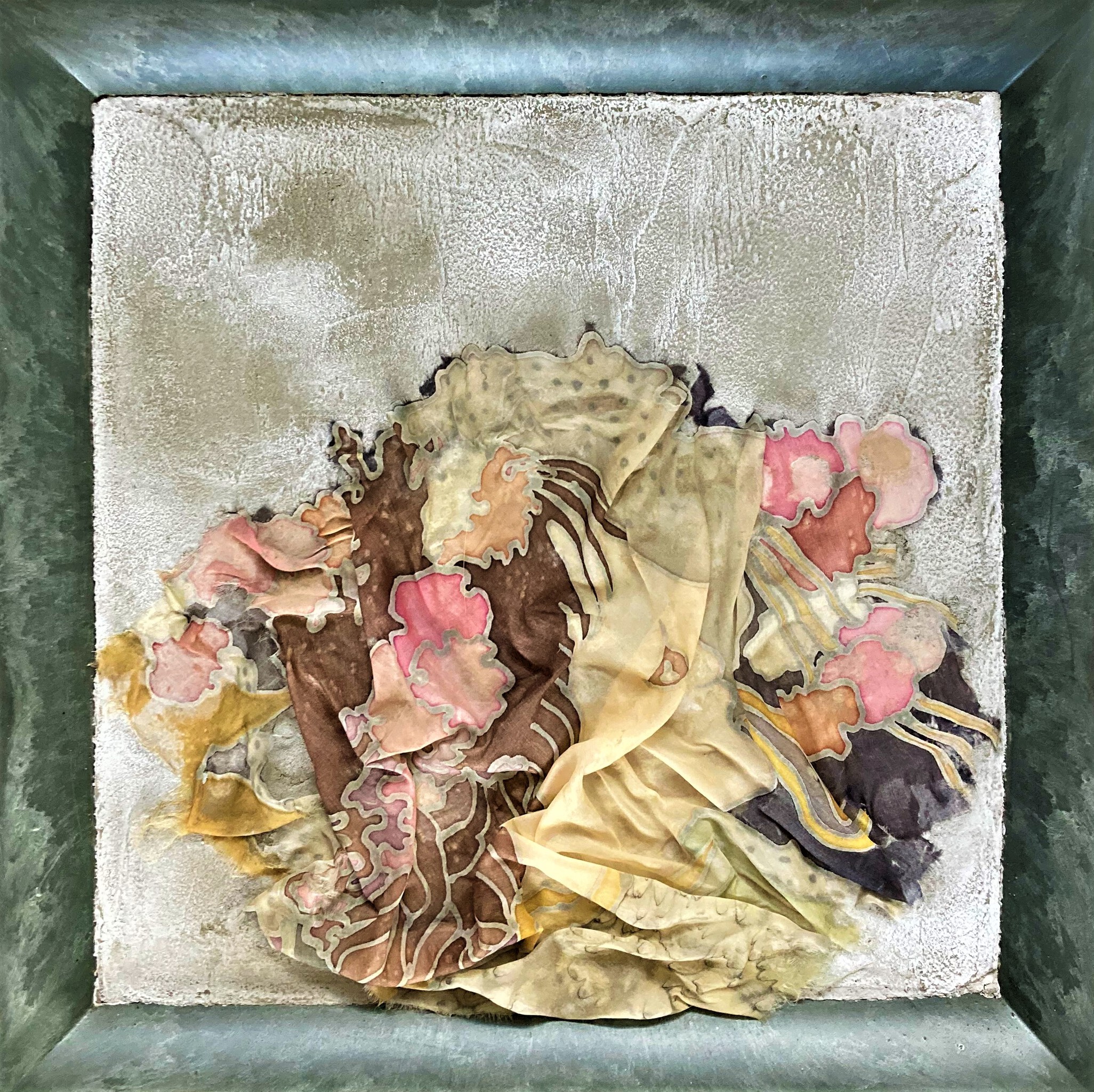 Zijden boeketje gevangen in cement