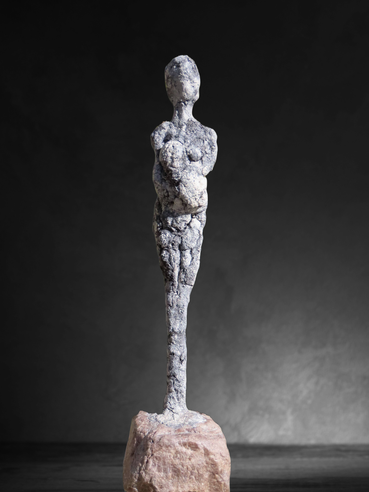 Een geabstraheerd beeld van een moeder en haar kind. Symbolisch voor het dankbaar zijn en het koesteren van de dingen die je heel dierbaar zijn. Gemaakt van een zelfgemaakte klei van paverpol, artstone en paversand.