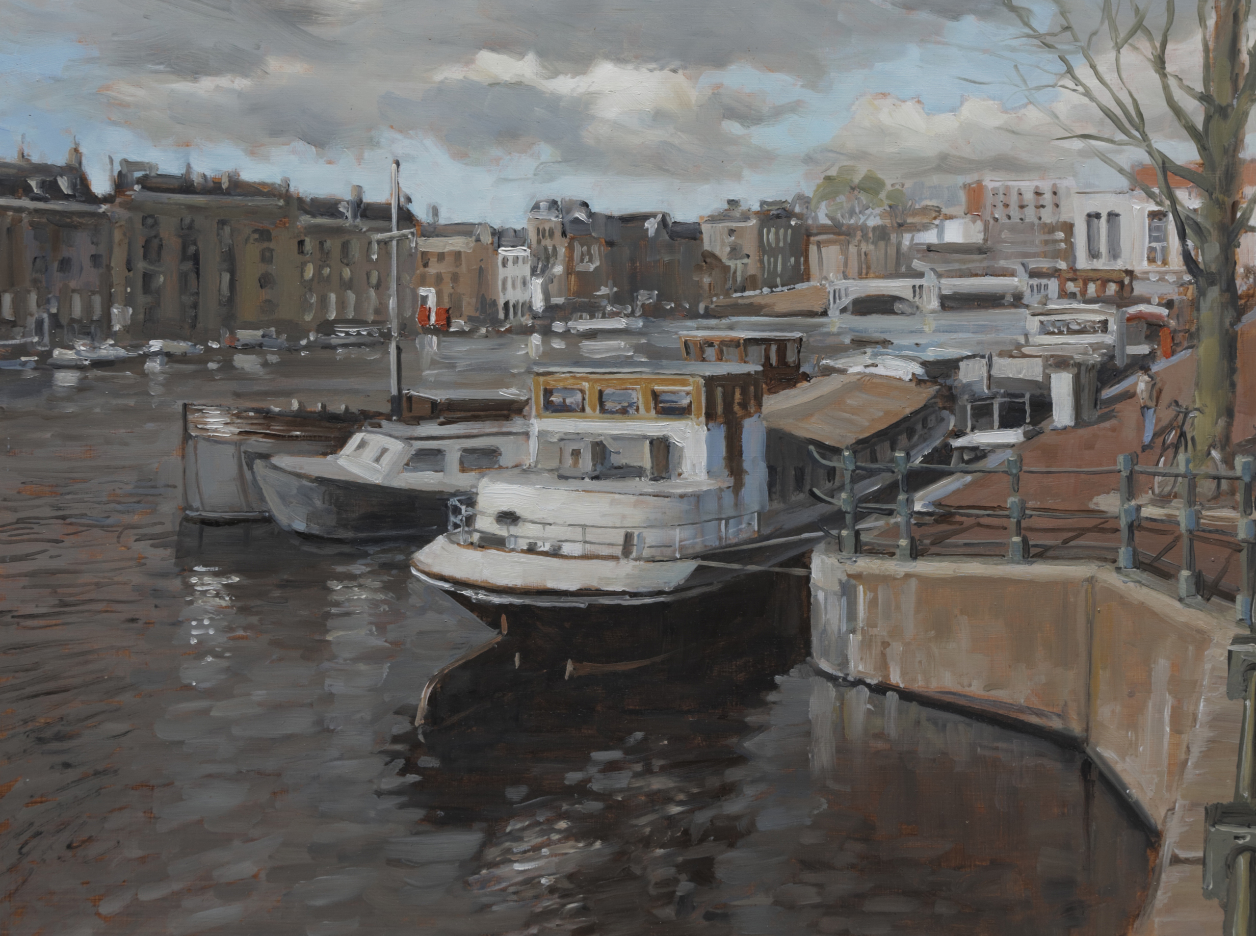 Amstel met boten langs kade