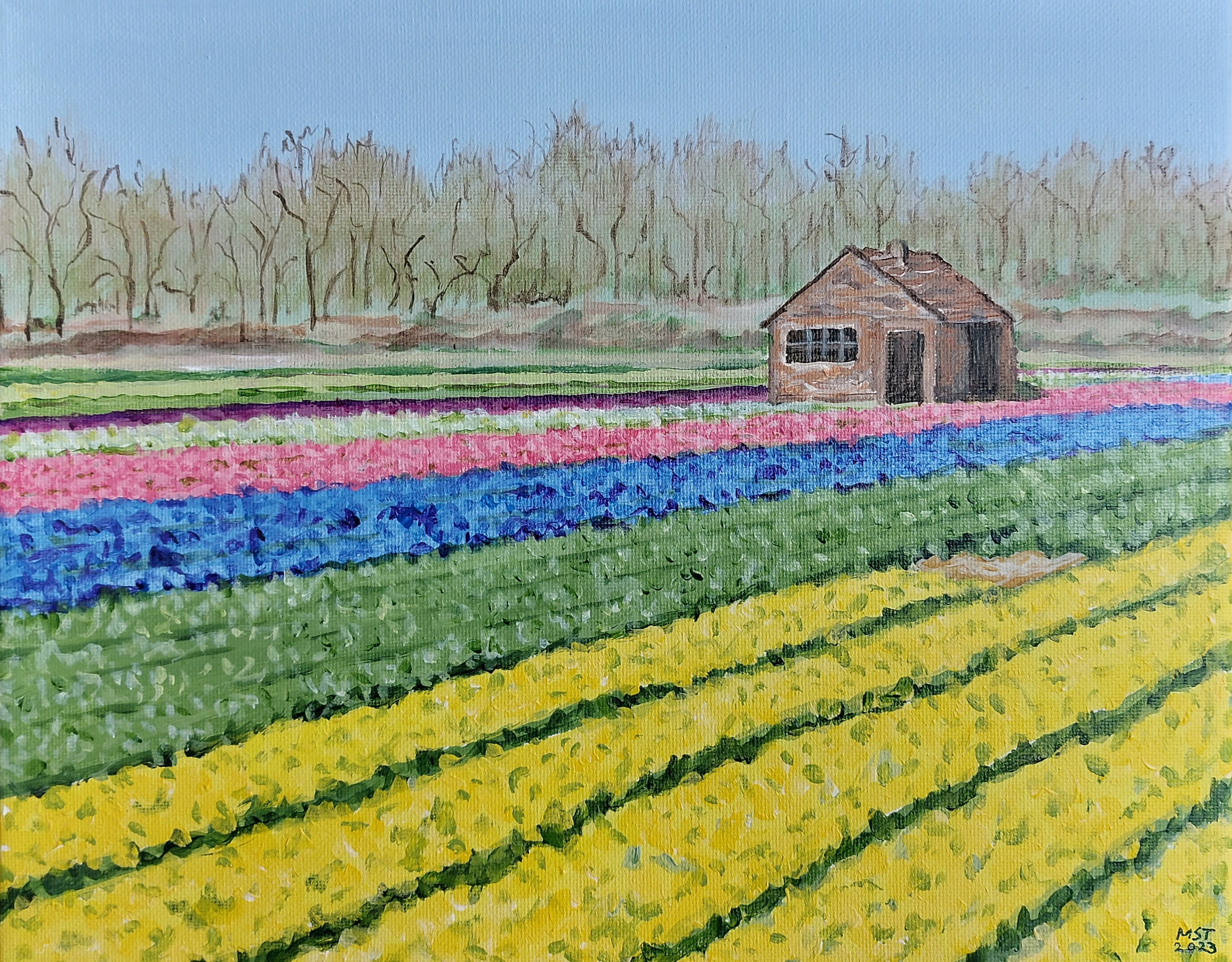Zicht op het landschuurtje in de bollenvelden bij Vogelenzang Nr 3