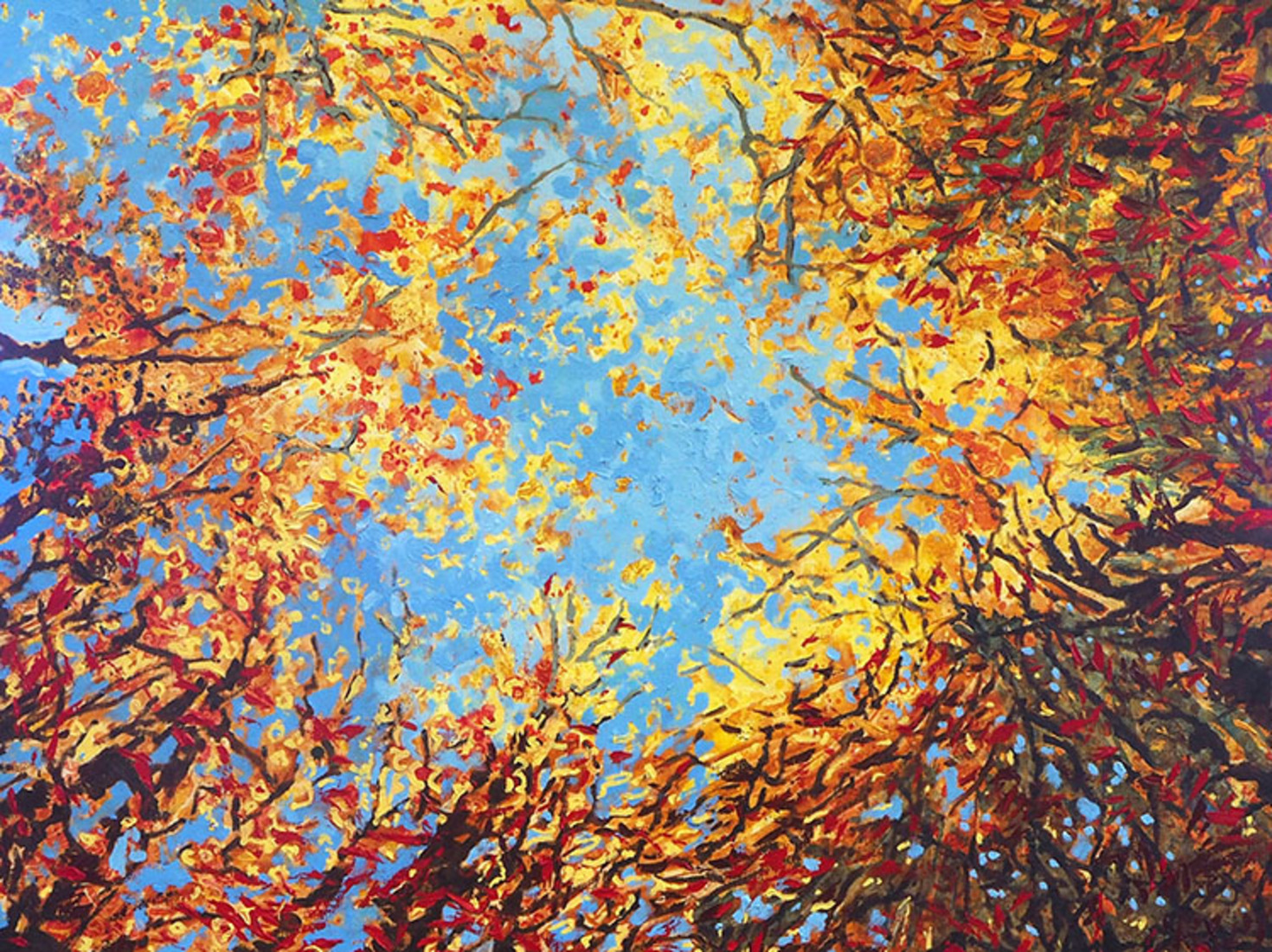 Schilderkunst Bladeren Bomen Olieverfschilderij Lucht Herfst Bos Takken Nederland Breda Landschapschilderij Landschapschilder Kijk Kunstschilder Omhoog Margot Maaskant