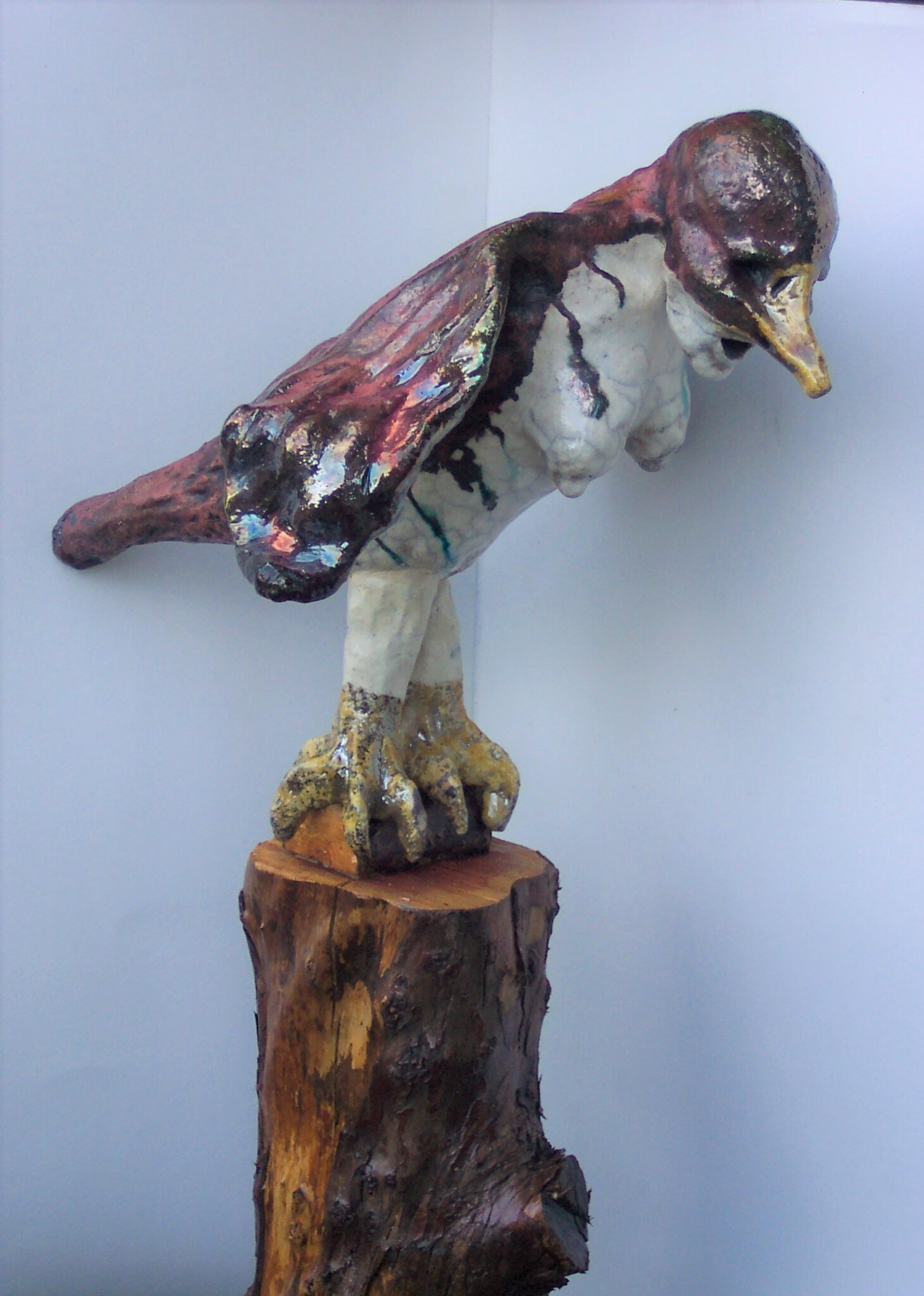 Fabeldier met het lichaam van een vrouw en het hoofd en poten van de arend op houten boomstam. Griekse Mytologie: een windgeest die men verantwoordelijk hield voor een plotselinge dood.