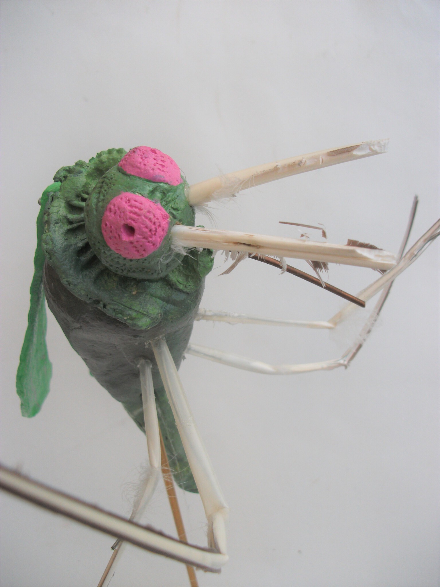 Mug, van papierklei, glazuurverf, met veren poten op pen met steen