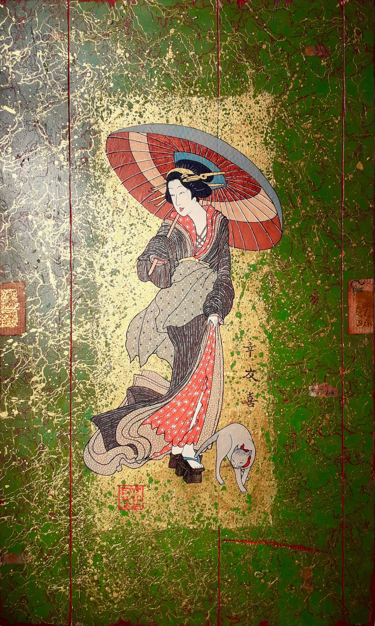 Paneel Schilderkunst Acrylverf Katten Japan