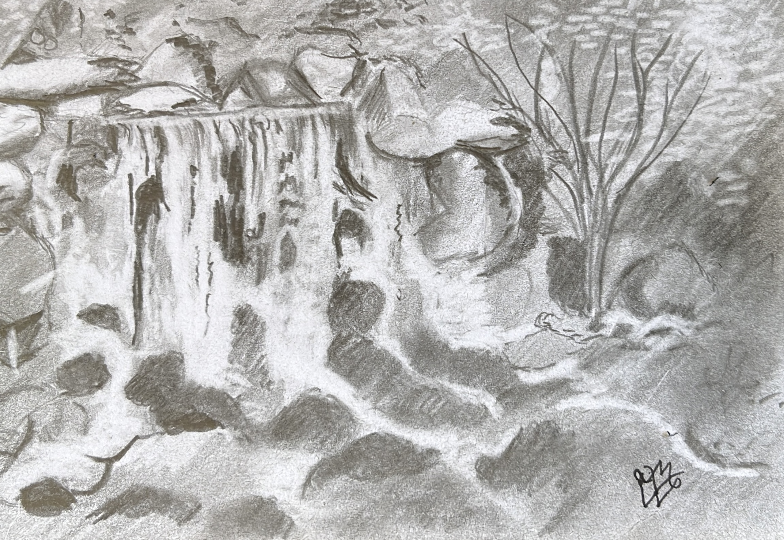 Arnhem Waterfall Toverwoudcreatief Pencil On Paper The Flood Of Water Art