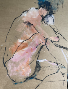 Mannelijk naakt, gemengde techniek op bruin kraftpapier.