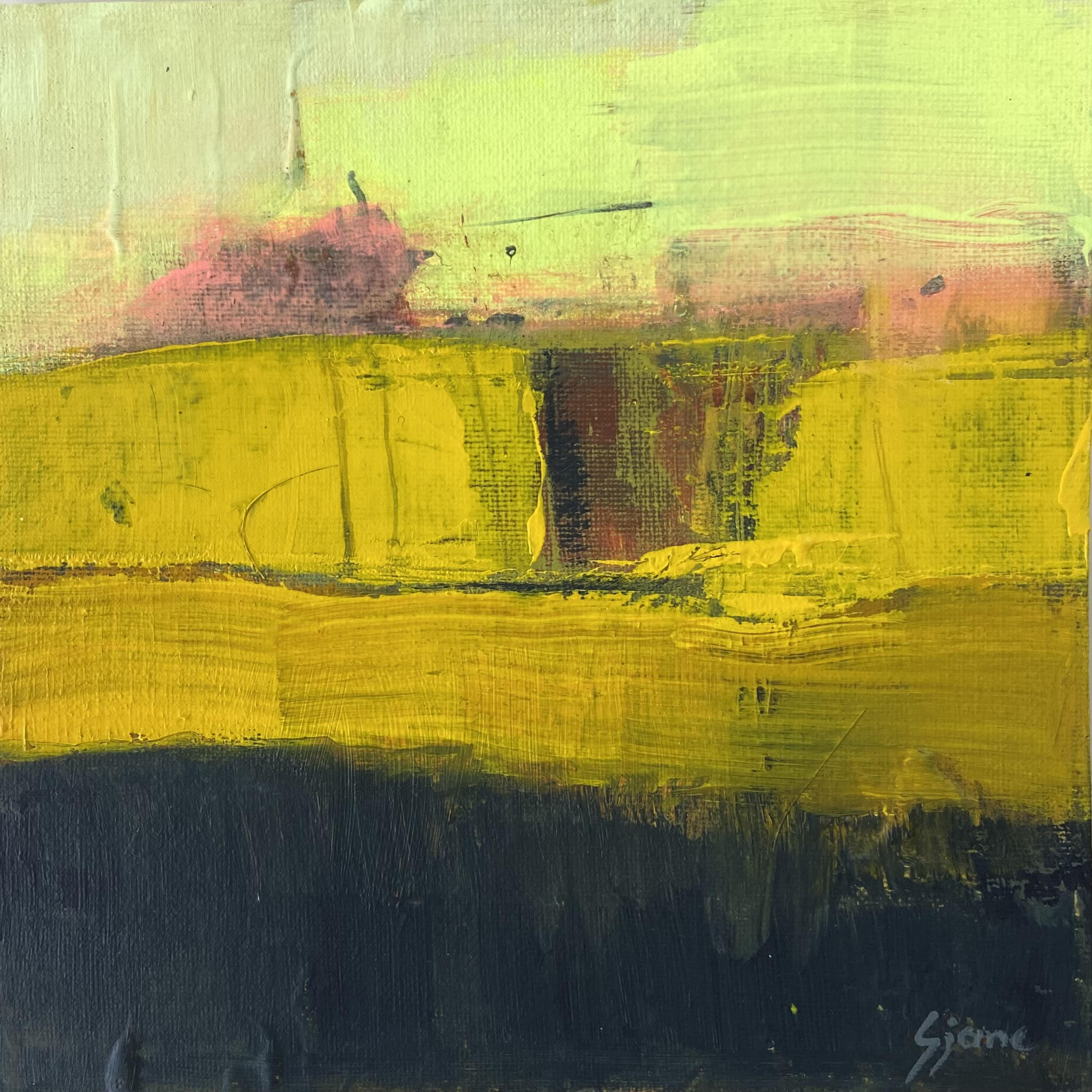Het landschap is mijn grootste inspiratiebron. In de zomer heb ik veel buiten geschilderd. Mijn landschappen zijn kleurrijk en sterk geabstraheerd. Op het moment zijn mijn landschappen abstract.