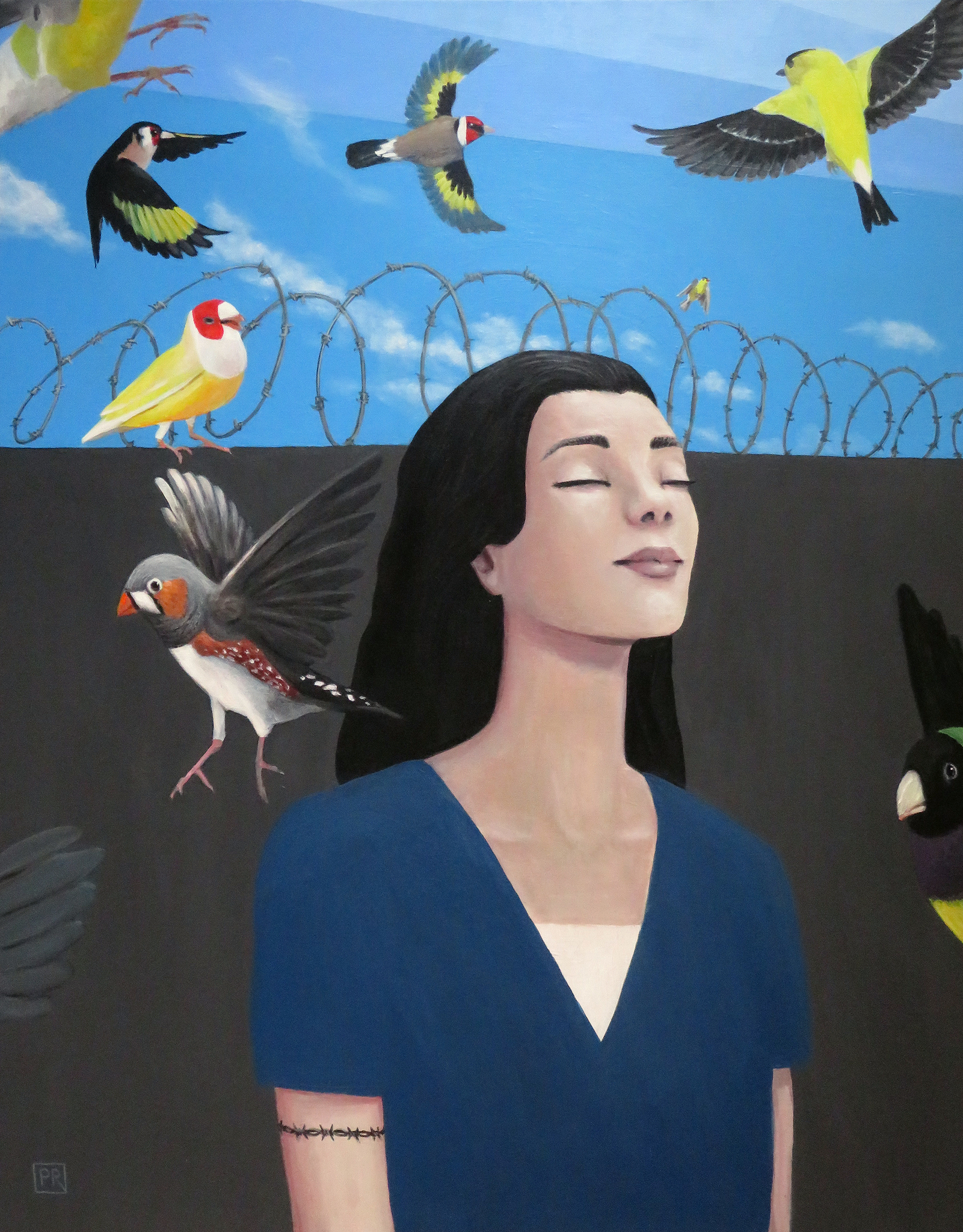 Vogel Vrouw Portret Ogen Lucht Vogels Vink Vrijheid Prikkeldraad Dicht Gevangenis