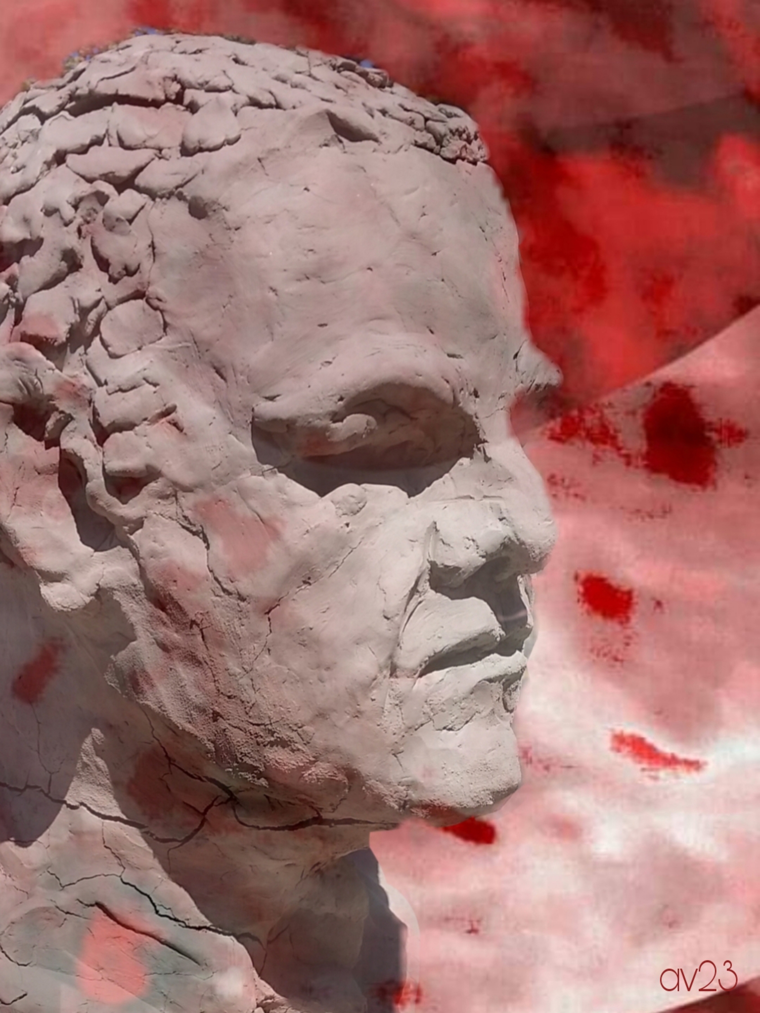 Digital art. Bewerkte foto van geboetseerd portret. Print verkrijgbaar op dibond. Afmeting 40 x 30 cm Oplage: 15 Andere formaten ook beschikbaar. Informeer naar de mogelijkheden