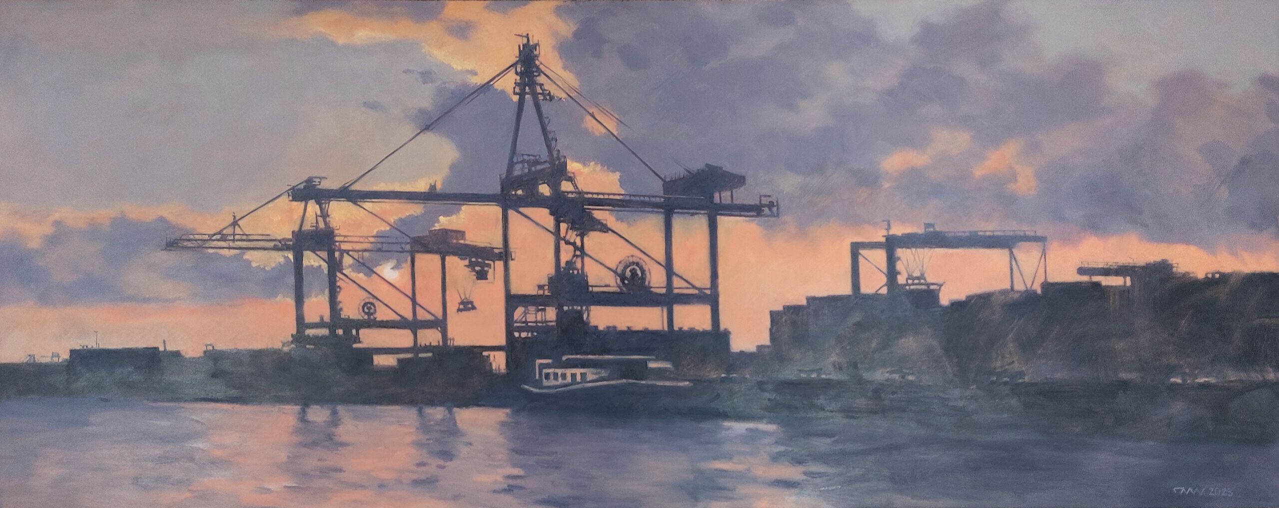 Olieverf Oilpainting Harbour Nacht Haven Rotterdam Tweede Maasvlakte Tweedemaasvlakte