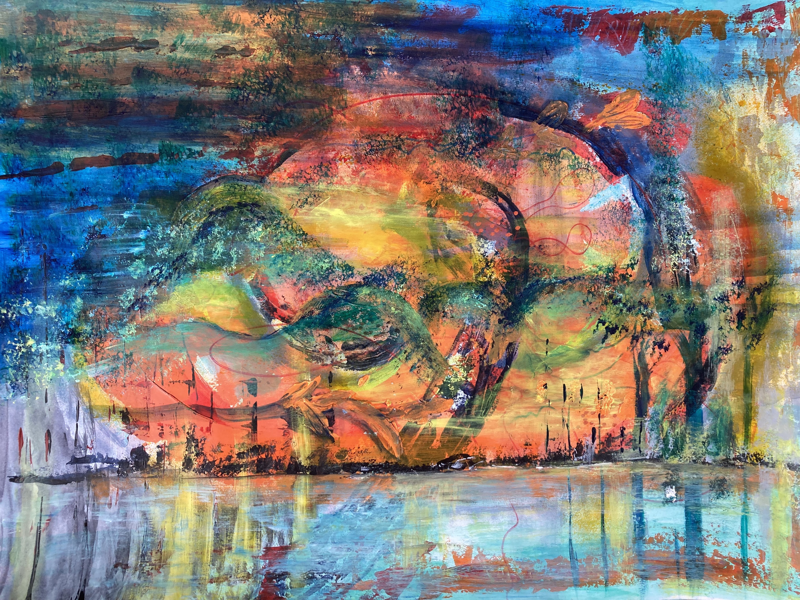 Schilderij Abstract Landschap Acryl Water Kleurrijk Fantasie Intuïtief