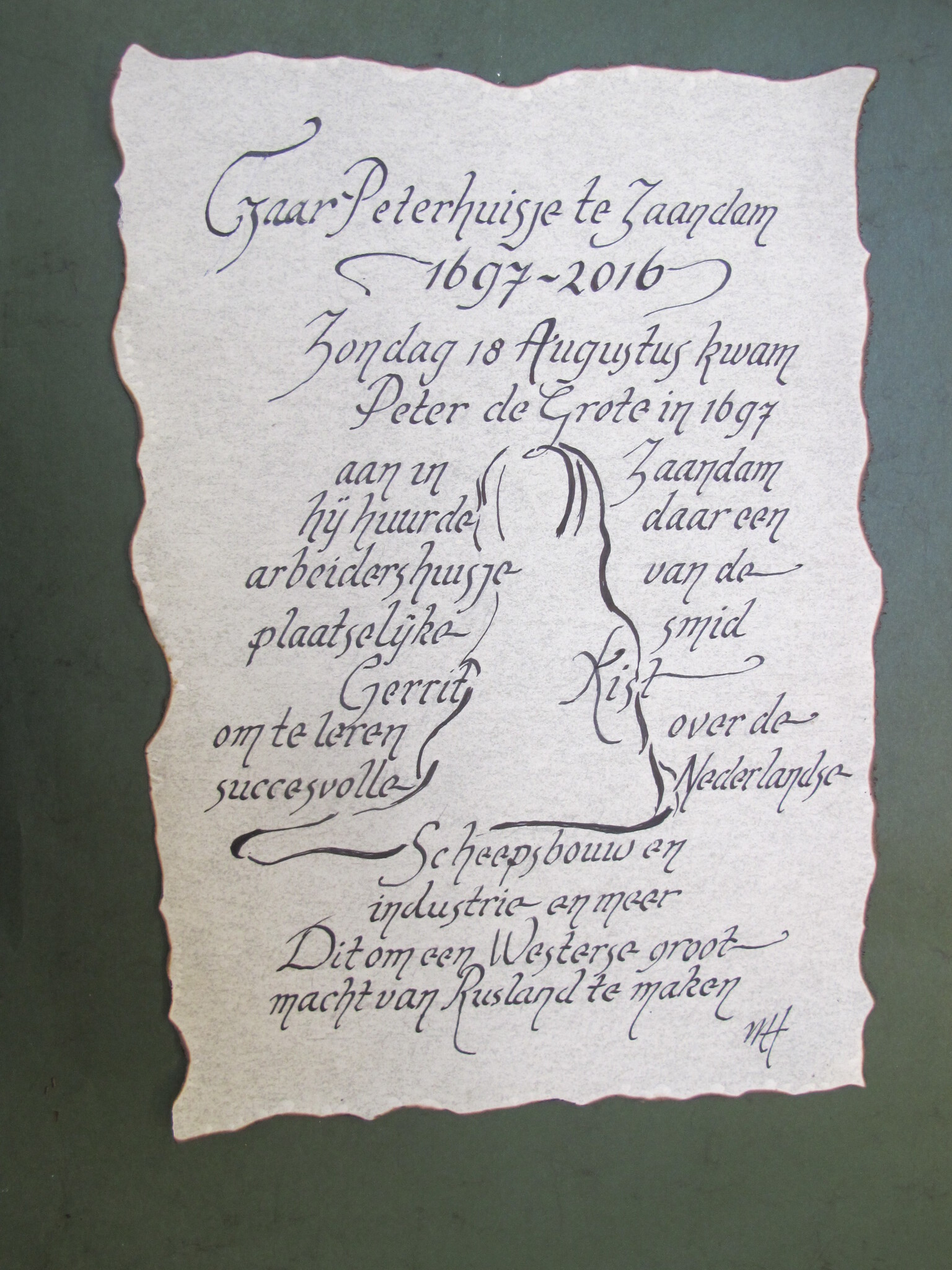 Kalligrafie behorende bij schilderij Czaar Peterhuisje Zaandam