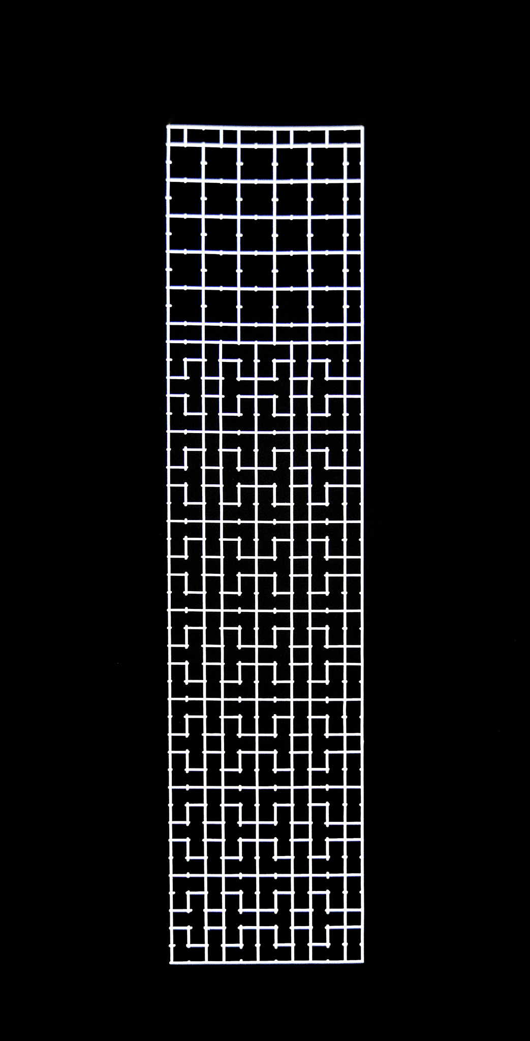 Uitvoering: Wit geplastificeerd raster op zwart paneel en omlijst met zwarte baklijst