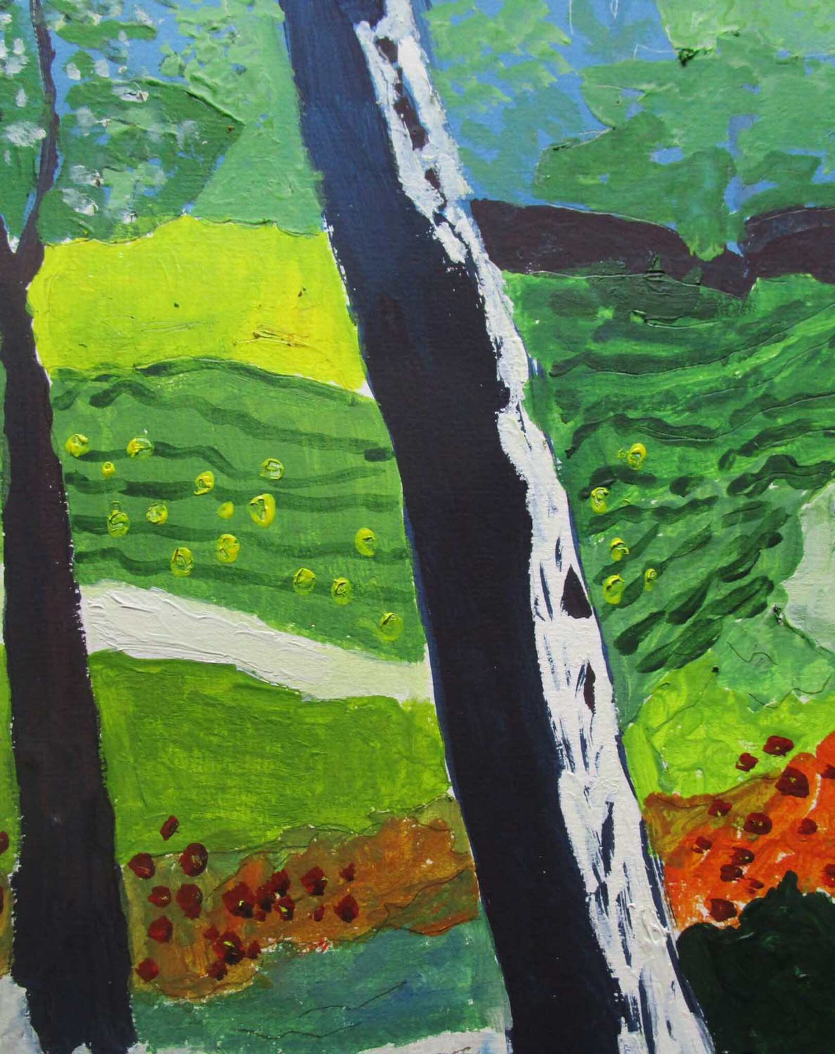 Oranje Geel Blauw Groen Bloemen Bomen Struiken Berk