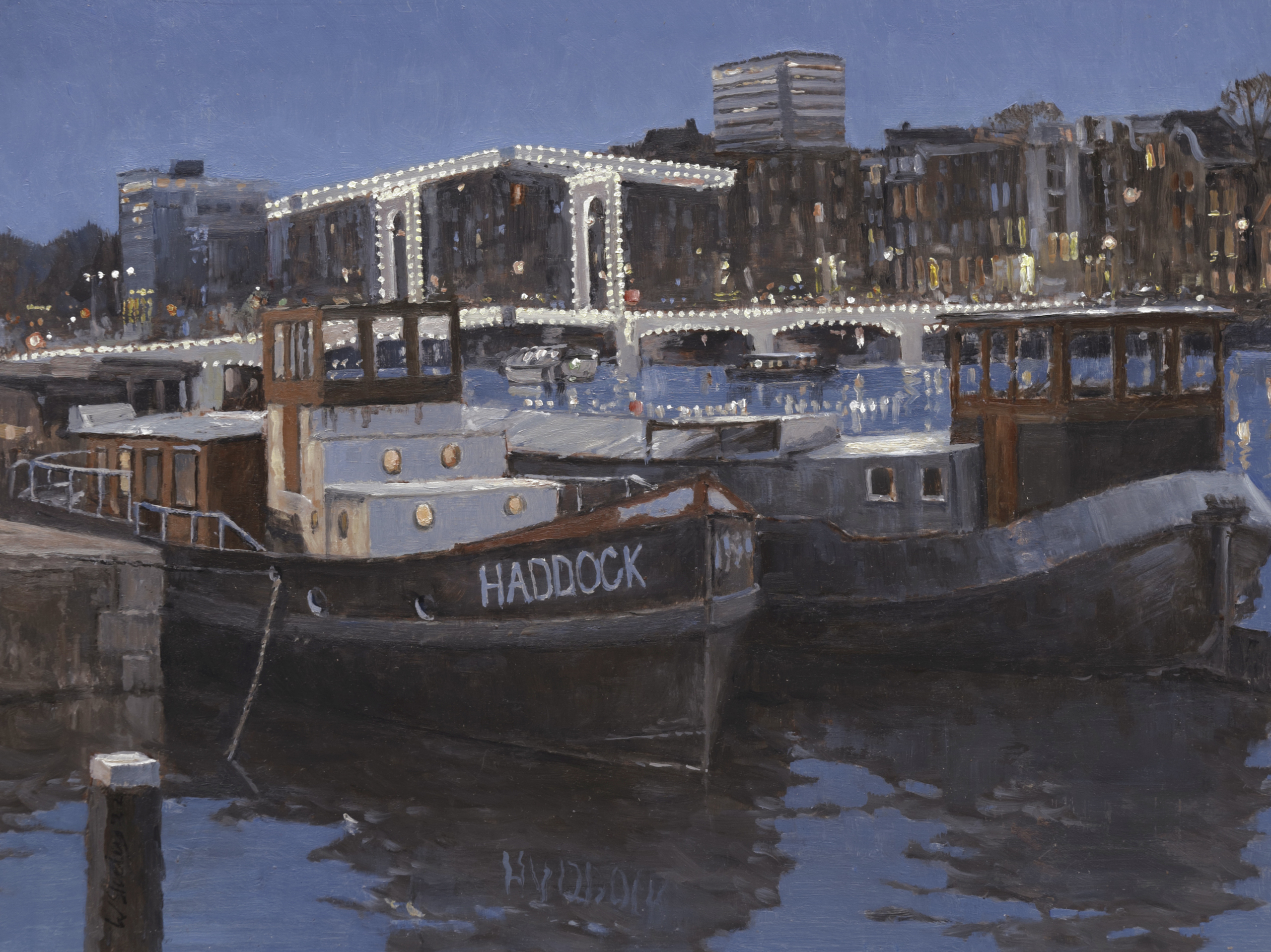 afgemeerde boten in Amstel bij magere brug