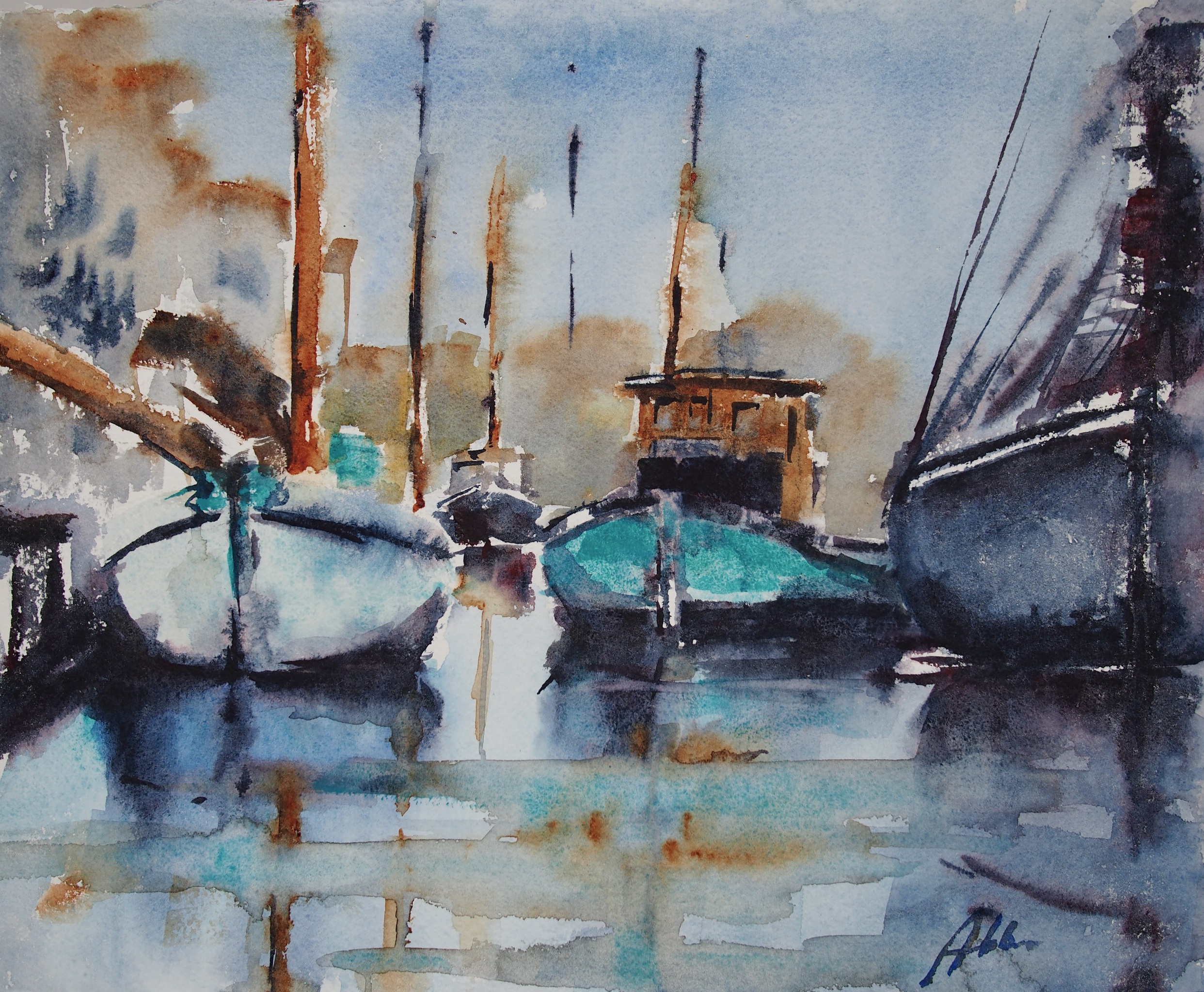 Aquarel Haven Hoorn Kouwenhoven Aad Anne-van-nieuwkoop