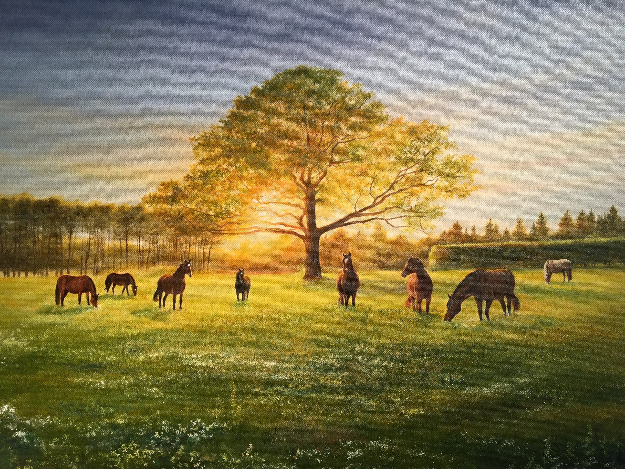 In mijn blog kunt u lezen hoe ik aan deze prachtige opdracht kwam van deze kudde paarden (Freibergers o.a.) in hun omgeving. In my blog you can read how I came about this beautiful commission of this group of horses (Freibergers a.o.) and their surroundings.