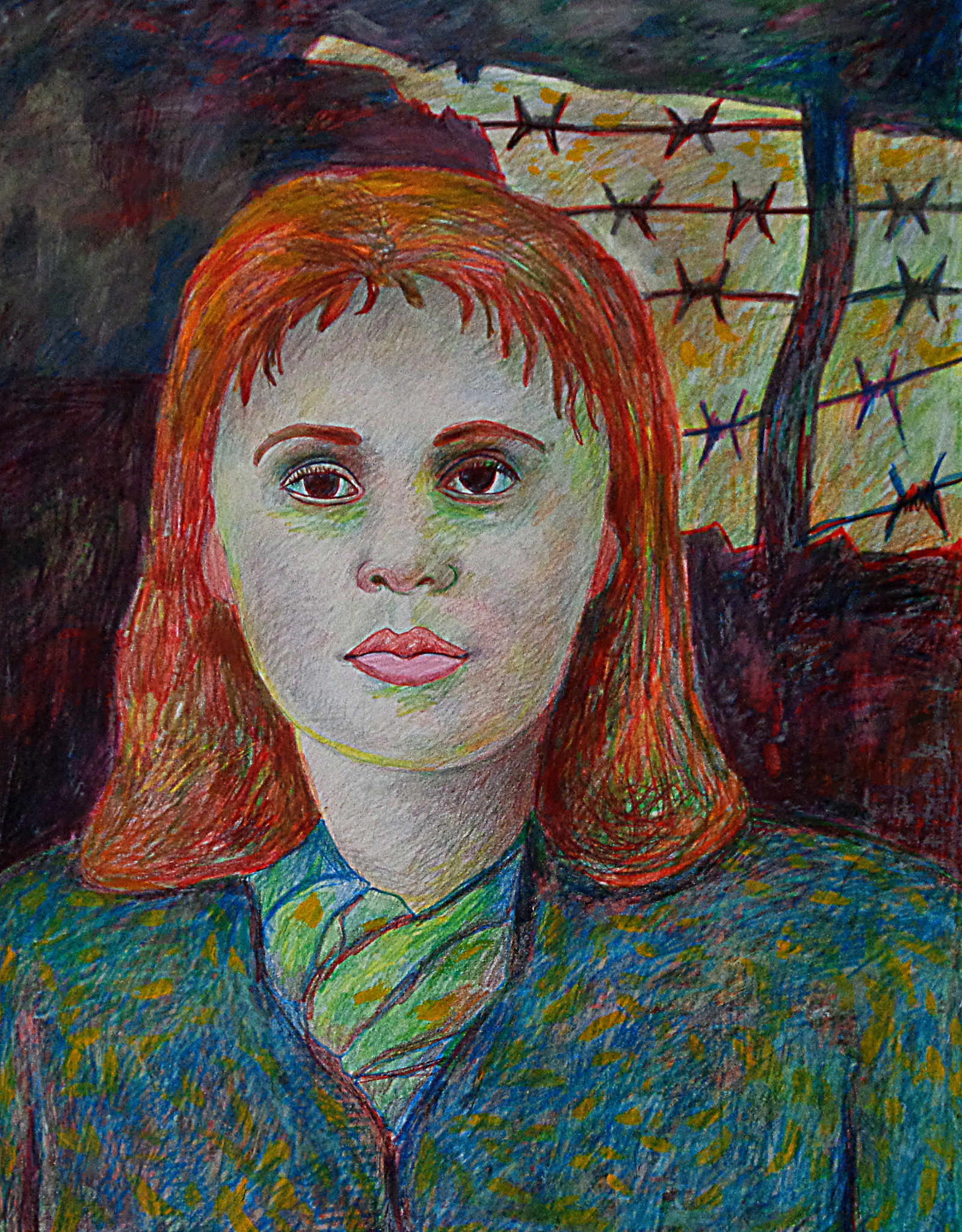 Vrij werk in kleurpotlood stift en oliepastel