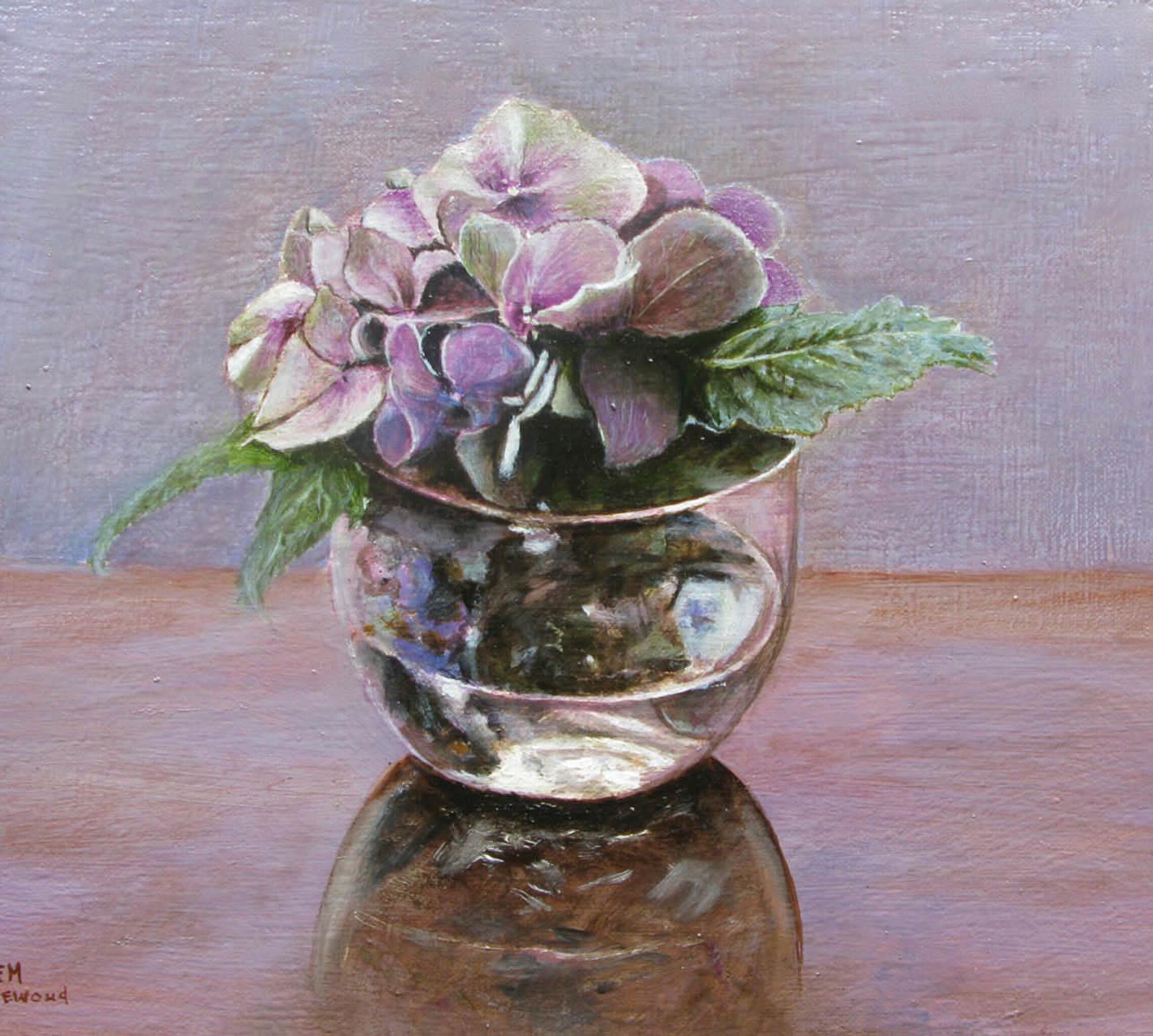 Hortensiabol op een glas water.