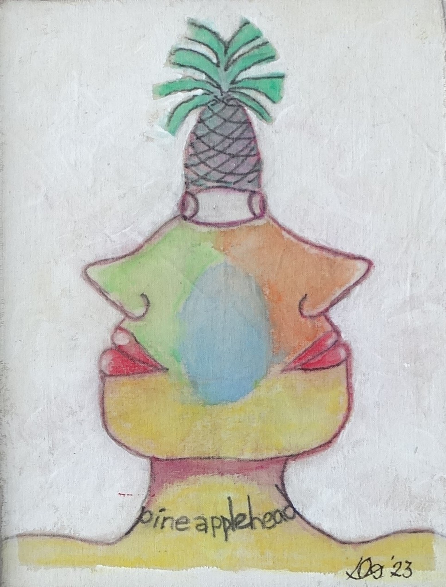 Op doek geschilderd met aquarel en acryl, daarna op hout gelijmd. Klein gek werkje tussendoor. Afmetingen en prijs zijn incl. houten lijst.
