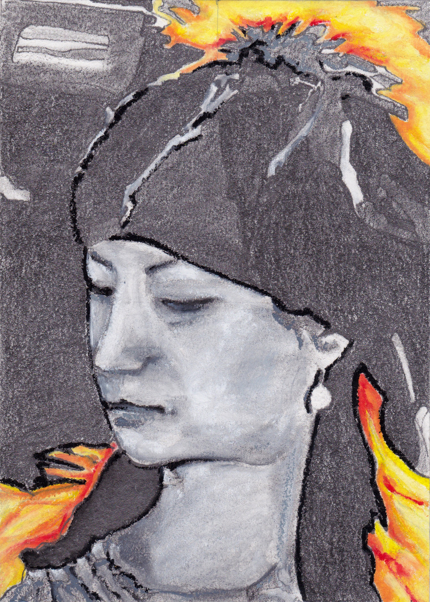 Portret gebaseerd op fragment van een krantenfoto, waarschijnlijk uit de Volkskrant, uitgegeven ergens tussen 2005 en 2018. Los van de context, los van de inhoud en los van de gebeurtenis probeer ik een vervliegend moment (niets veroudert zo snel als krantennieuws) langer vast te houden en te laten zien dat het altijd om mensen draait, ook al weten we niet wie het is.