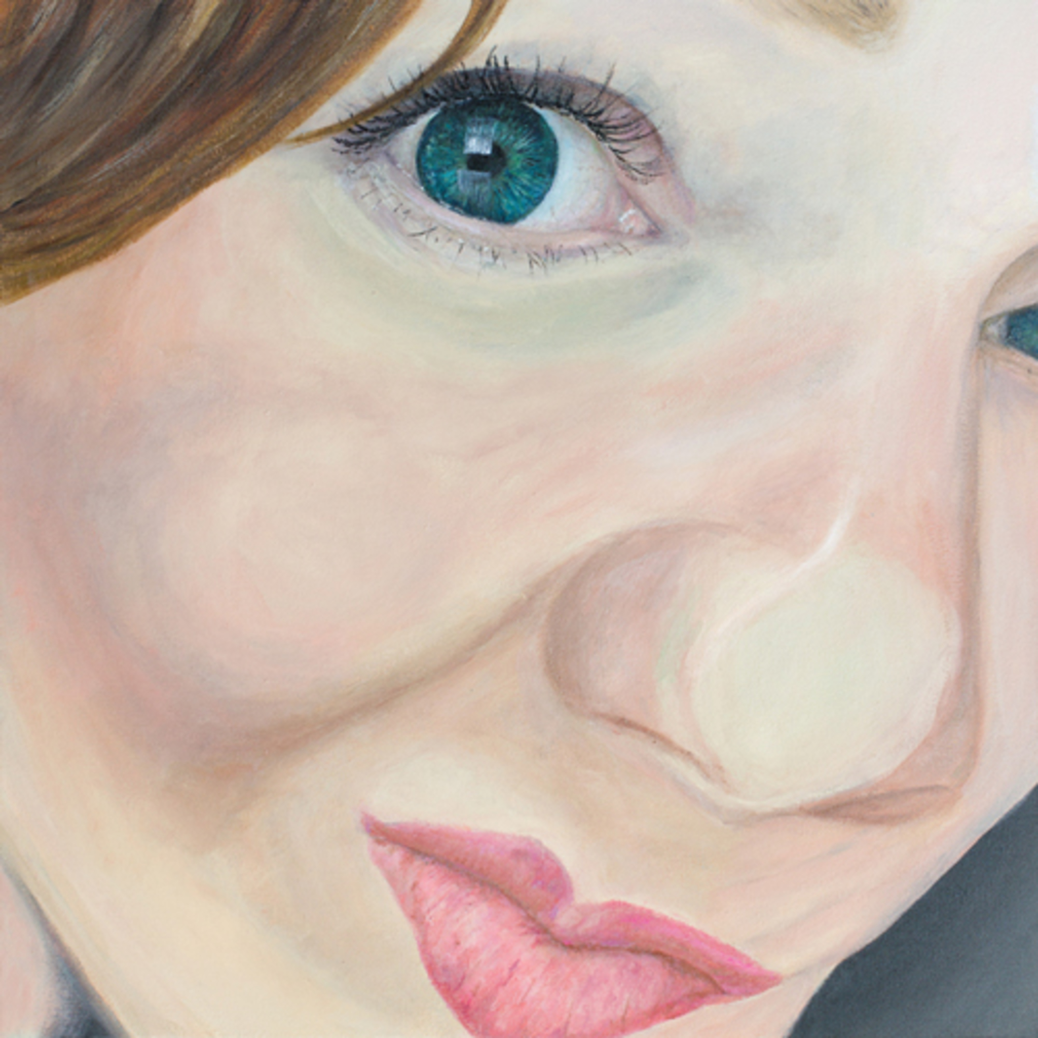 Portret waarbij de kijker niet alleen kijkt, maar ook bekeken wórdt. De beschouwende blik wordt intens teruggekaatst. Het portret wil uit de beperking van het doek kruipen op zoek naar interactie met de toeschouwer. De titel wil de kijker bovendien uitdagen om de eigen blik op het werk te onderzoeken. Vanuit welke achtergrond, context, cultuur, of stemming kijk je, beleef je, beoordeel je? En hoe voel je je als je plotseling zélf onderworpen bent aan de beschouwende blik van het portret? Het verwijst naar de anonimiteit van de kijker. Als kunstenaar toon je je werk aan de wereld, maar vaak heb je geen idee wie ernaar kijkt en wat de beleving bij het werk is. Excl. lijst.