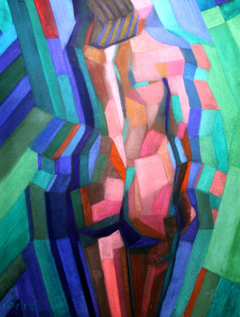 Kubistisch naakt, pastel op Hahnemühle velours-papier, niet-ingelijst