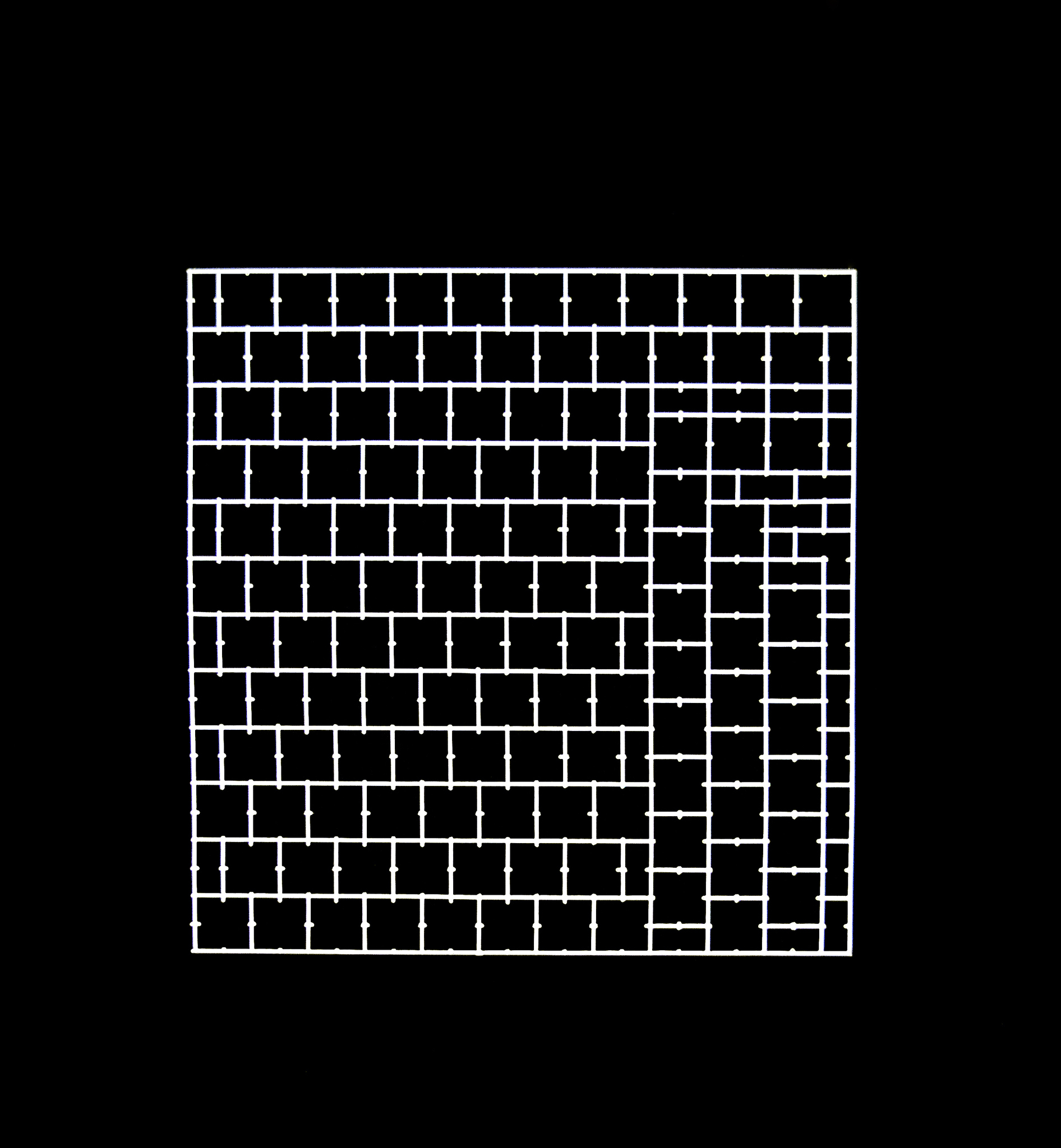 Uitvoering: Wit geplastificeerd raster op zwart paneel en omlijst met zwarte baklijst