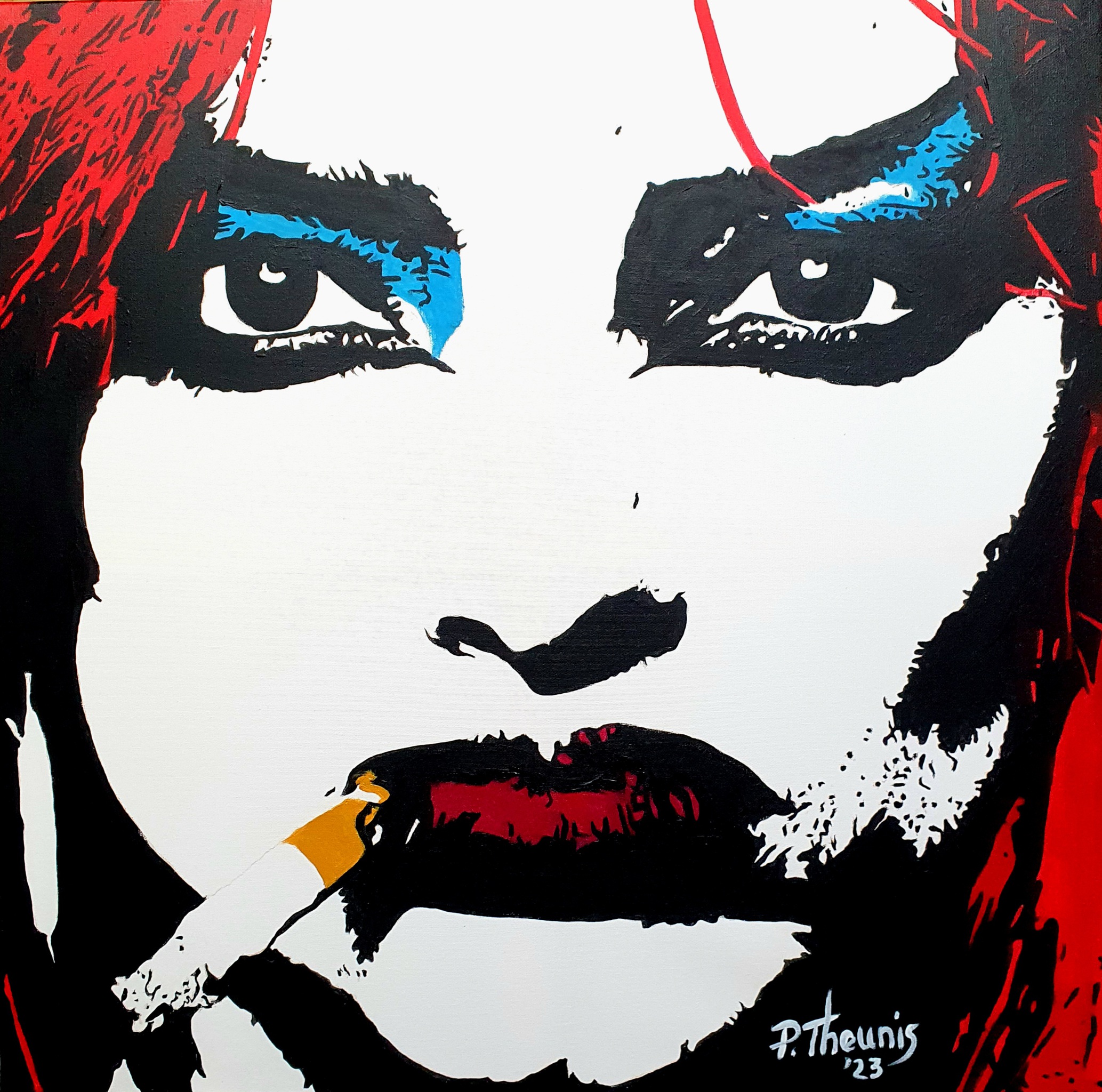Als Herman Brood in dit rijtje thuis hoort, dan mag zijn ex zeker niet ontbreken... NIna Hagen, geschilderd in acrylverf.