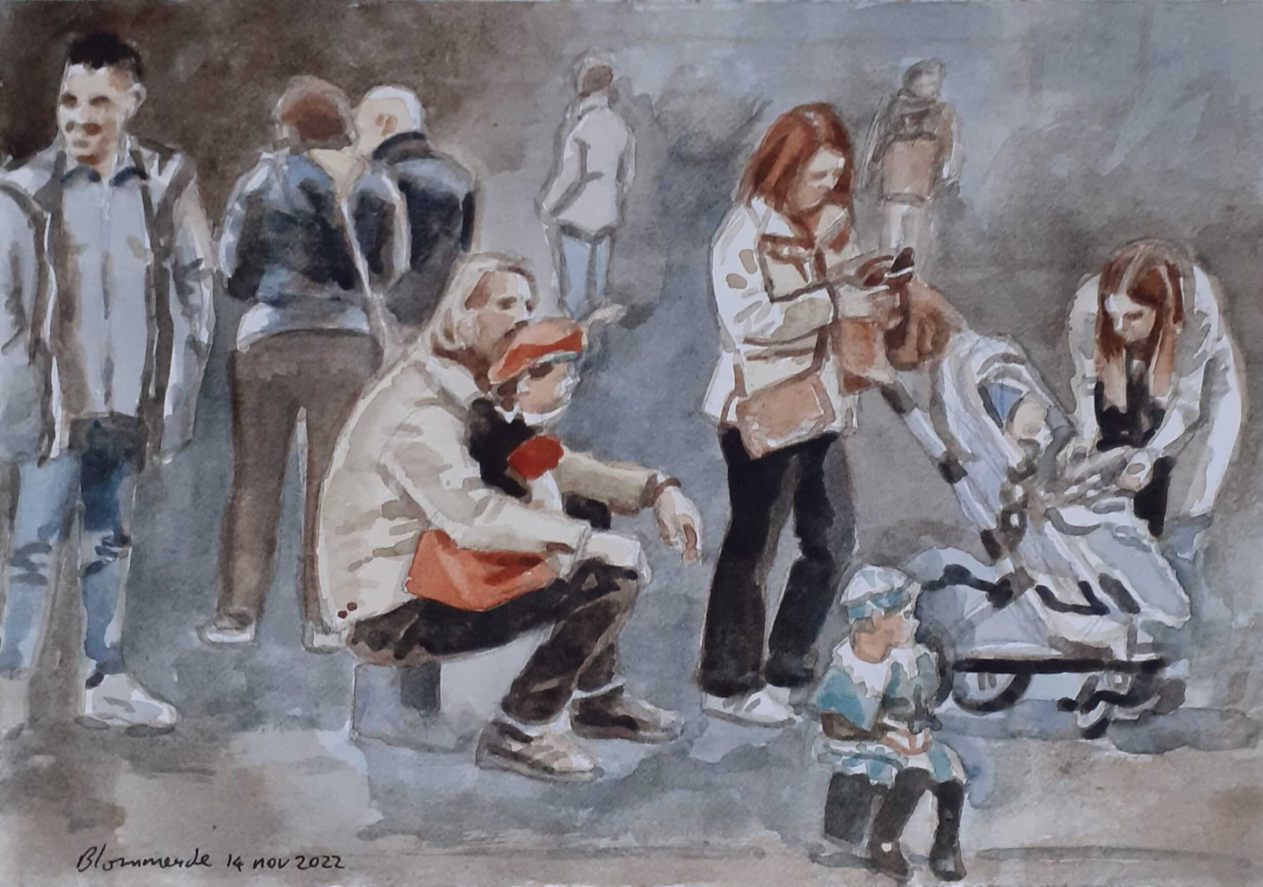 Aquarel van wachtenden bij Sinterklaasintocht 2022 in Den Haag