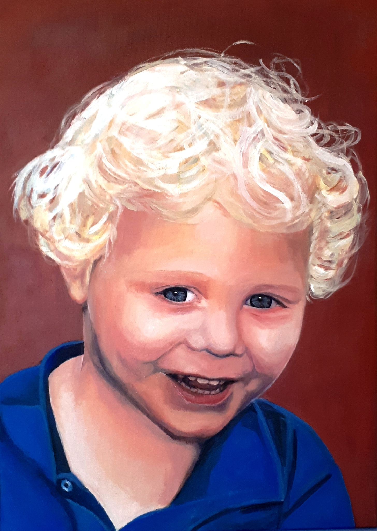 Red Rood Blond Fair Boy Jongen Portret Opdracht Portrait Commission Painting Schilderij Doek Canvas Acryl Acrylloc Louky Scheltema Loukyscheltema