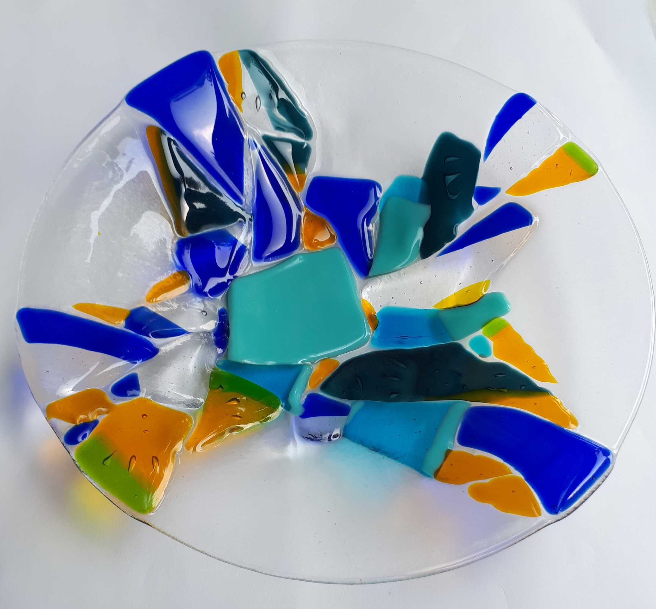Blue Blauw Oranje Orange Glas Glass Glasfusie Glasfusion Bord Plate Louky Scheltema Loukyscheltema