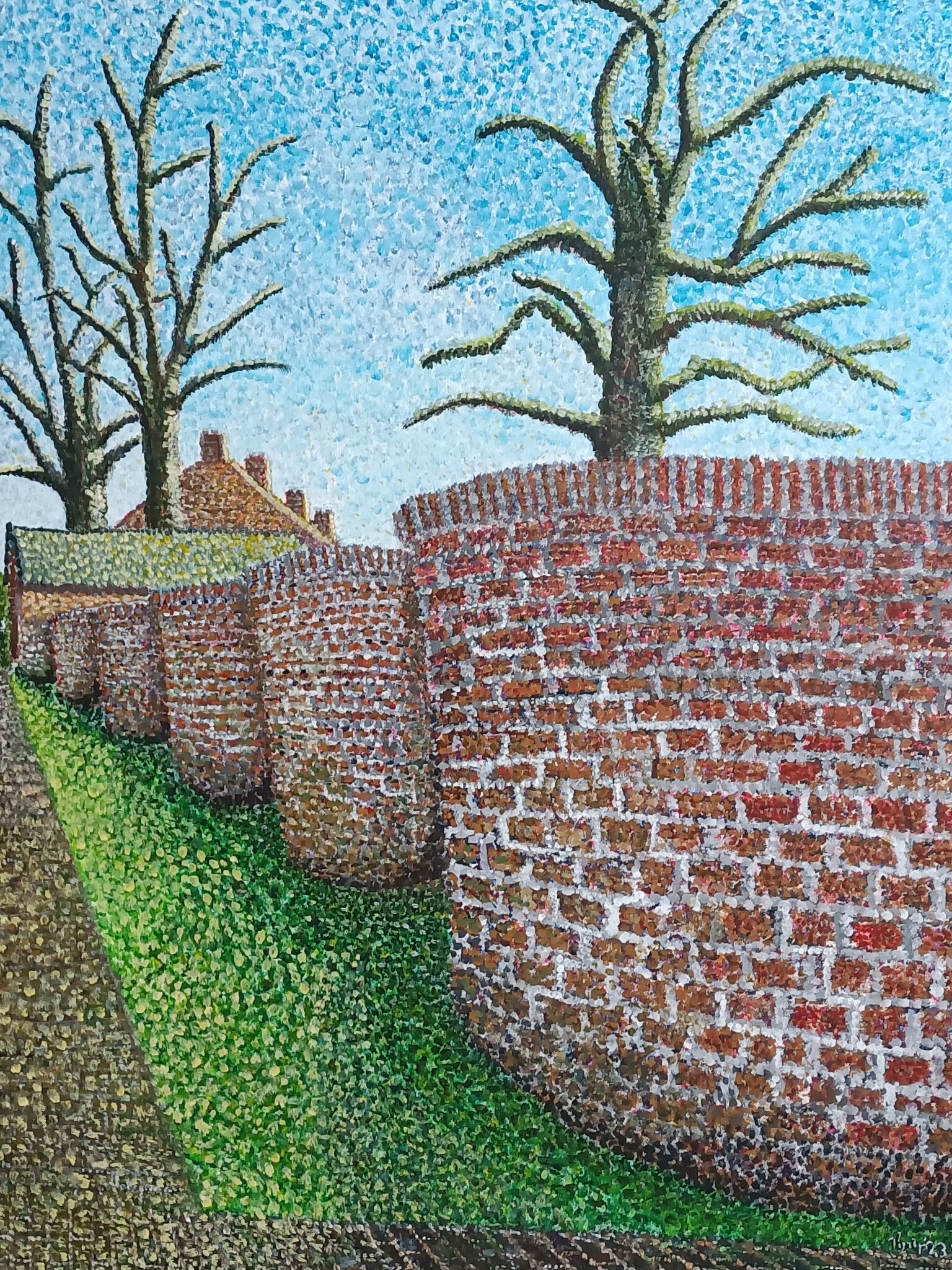 De slangenmuur is een monumentaal bouwwerk, waarvan er nog maar 20 in Nederland te vinden zijn. Het doel van deze muren is om optimaal gebruik te maken van de zonnewarmte en in de uithollingen werden de abrikozenbomen geplant. Het werk is geschilderd op canvas met acryl.