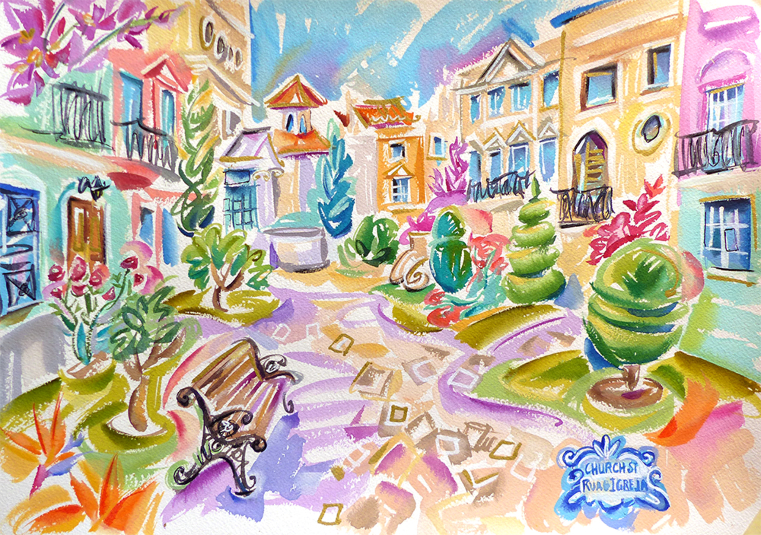 The Old Village Vilamoura Church Street Floral Architecture Algarve Watercolor Art