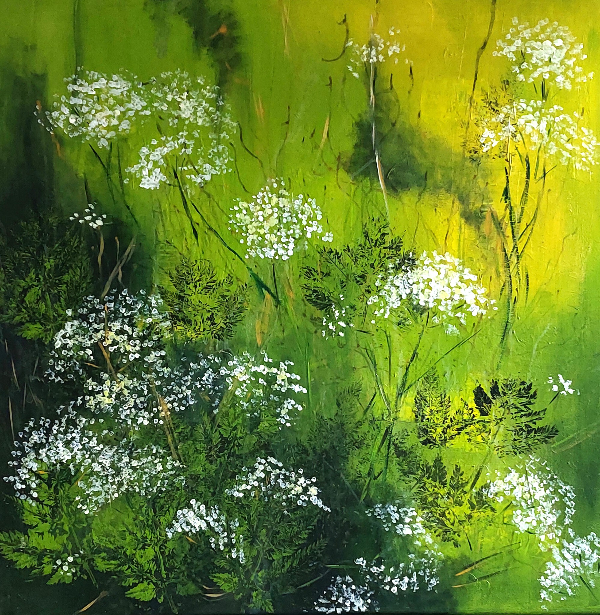 Zo mooi in het voorjaar als het Fluitenkruid bloeit als kantwerk in de berm. (Ook als kunstkaart te koop bij het kopje kunstkaarten)