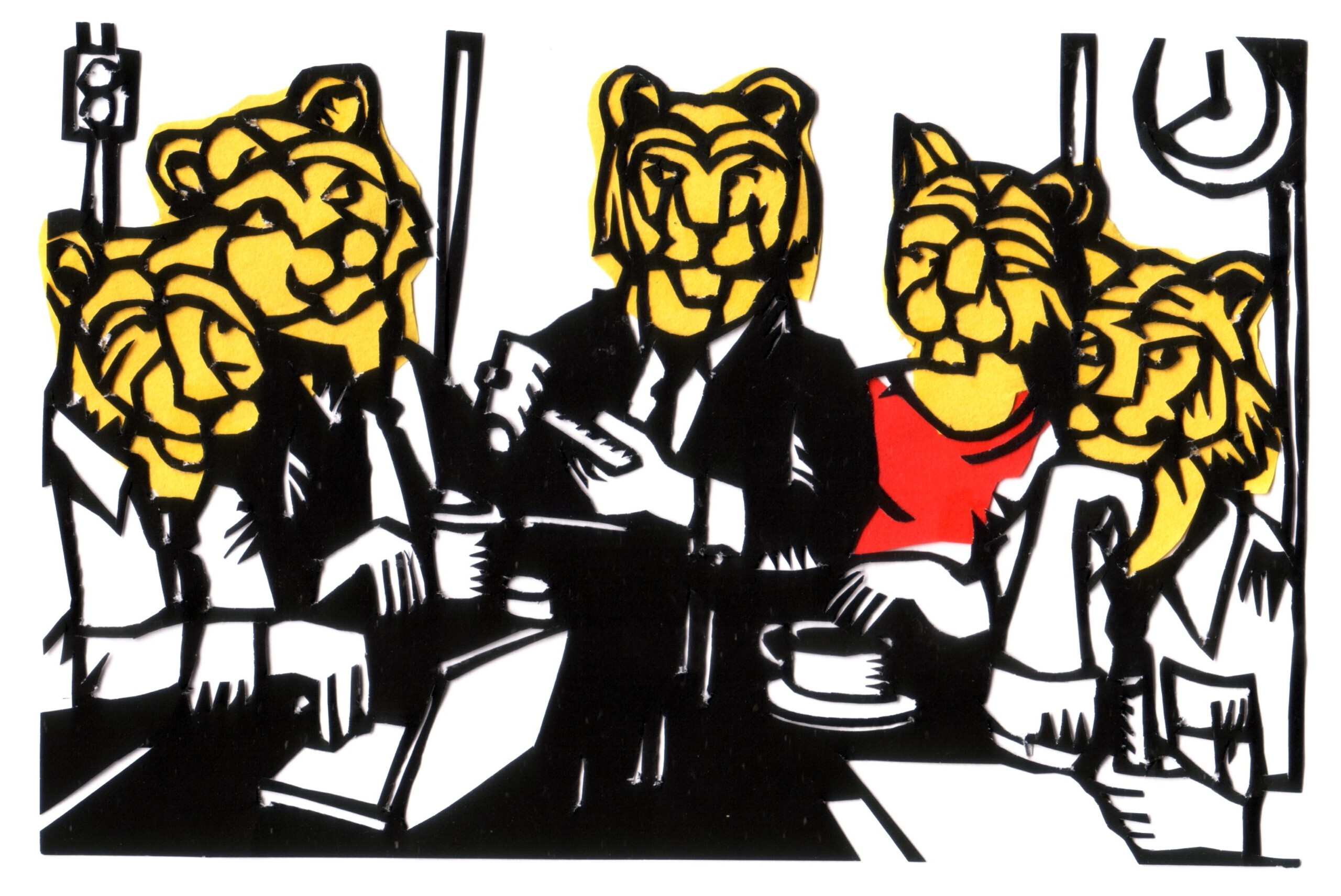 Decoupage Vergadering Meeting Knipsel Knipwerk Papierknipkunst Scherenschnitt Papercutout Vergadertijger