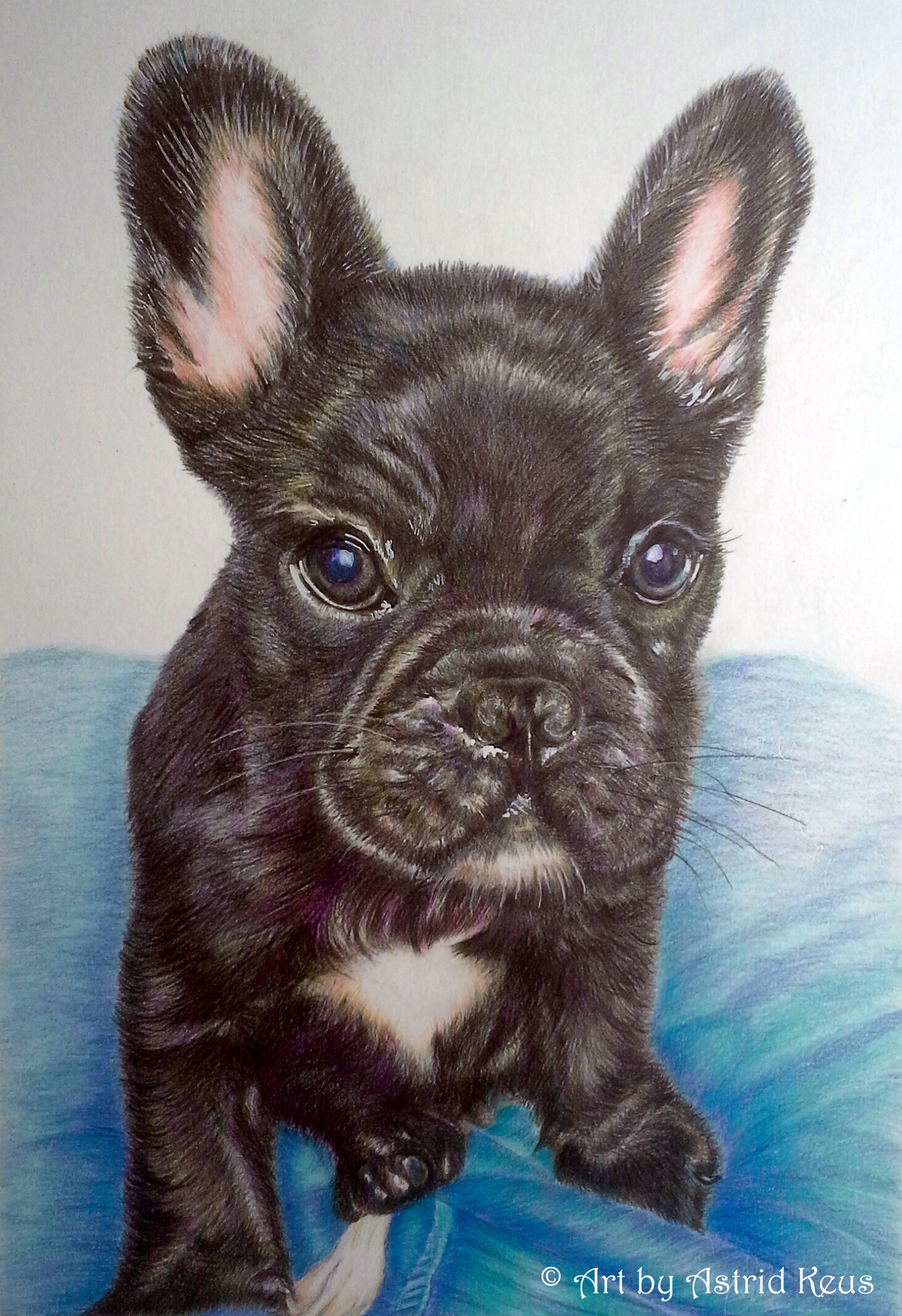 Een tekening van Hank gemaakt in opdracht. Het was een prachtig hondje maar helaas had hij maar een kort leventje.