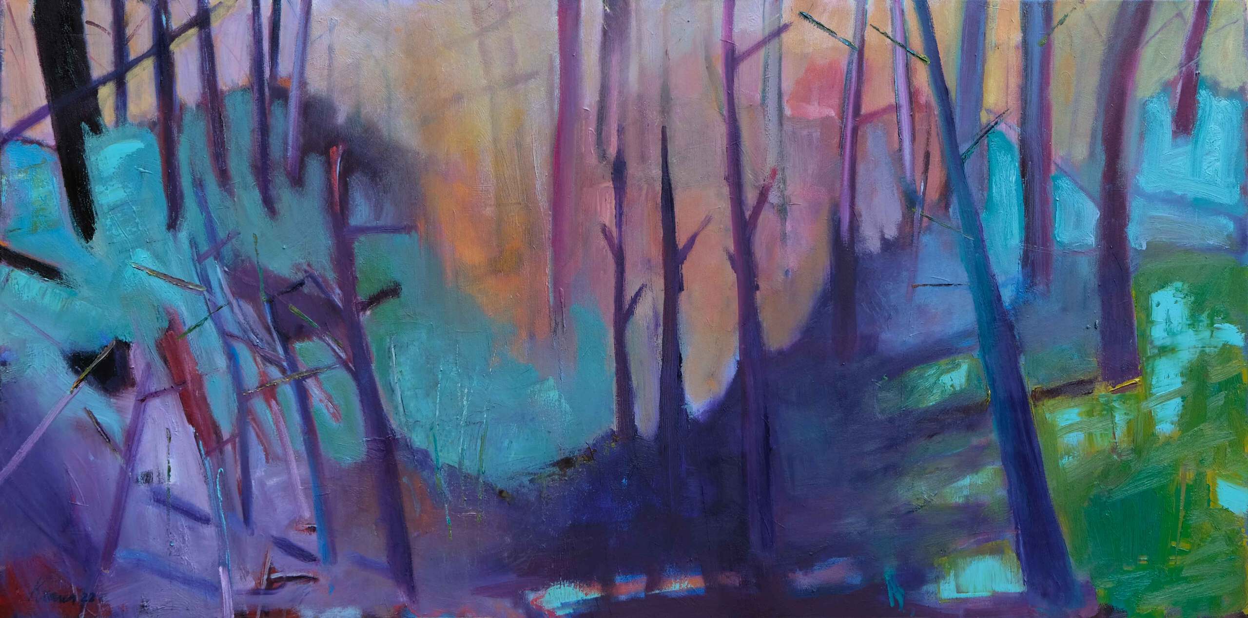 Landschap Blauw Expressief Paars Groen Natuur Bomen Abstraherend Bos