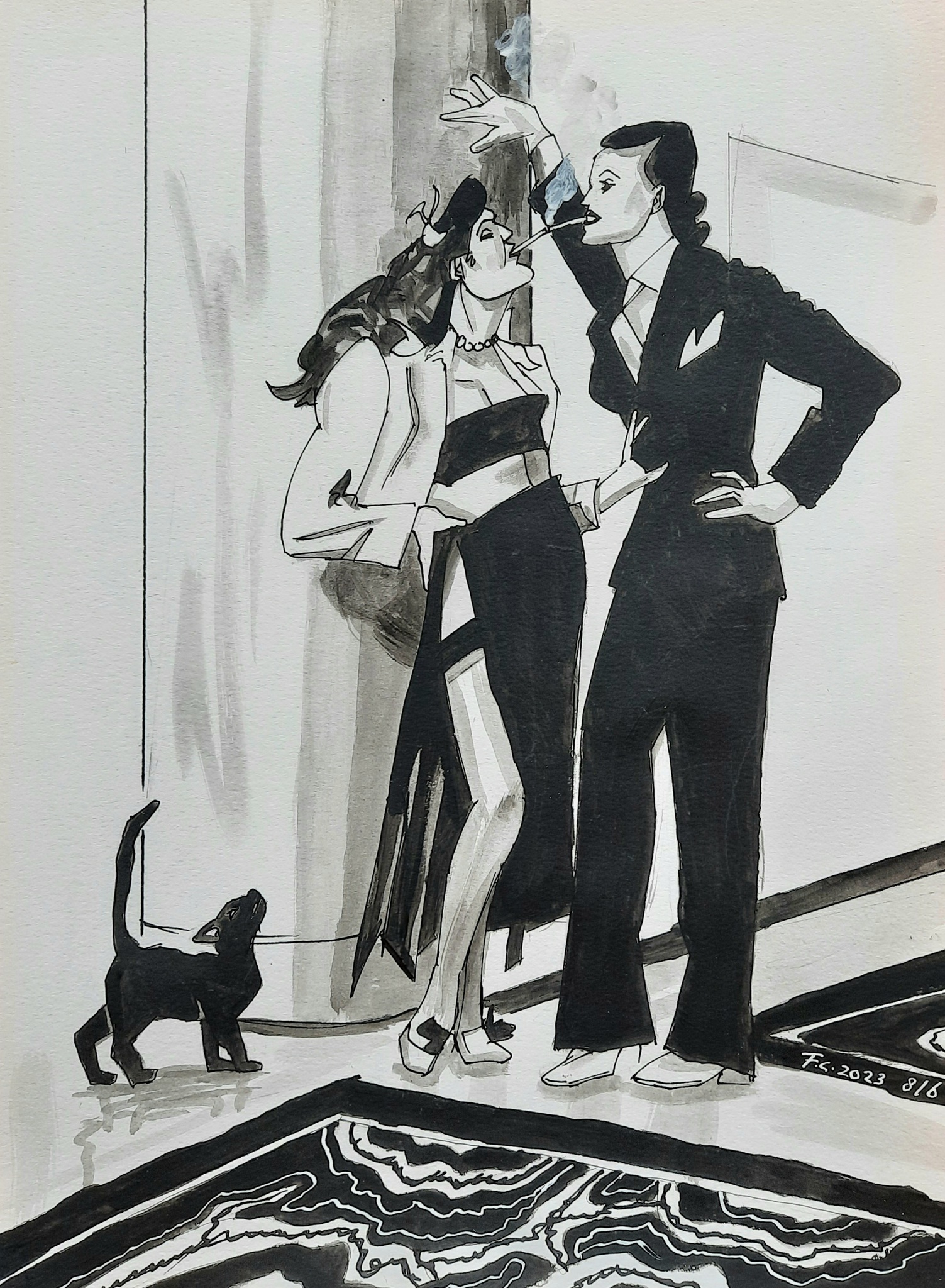 Vrouwen Kat Erotiek Ontmoeting Hal Sigaret Aansteken Vintage