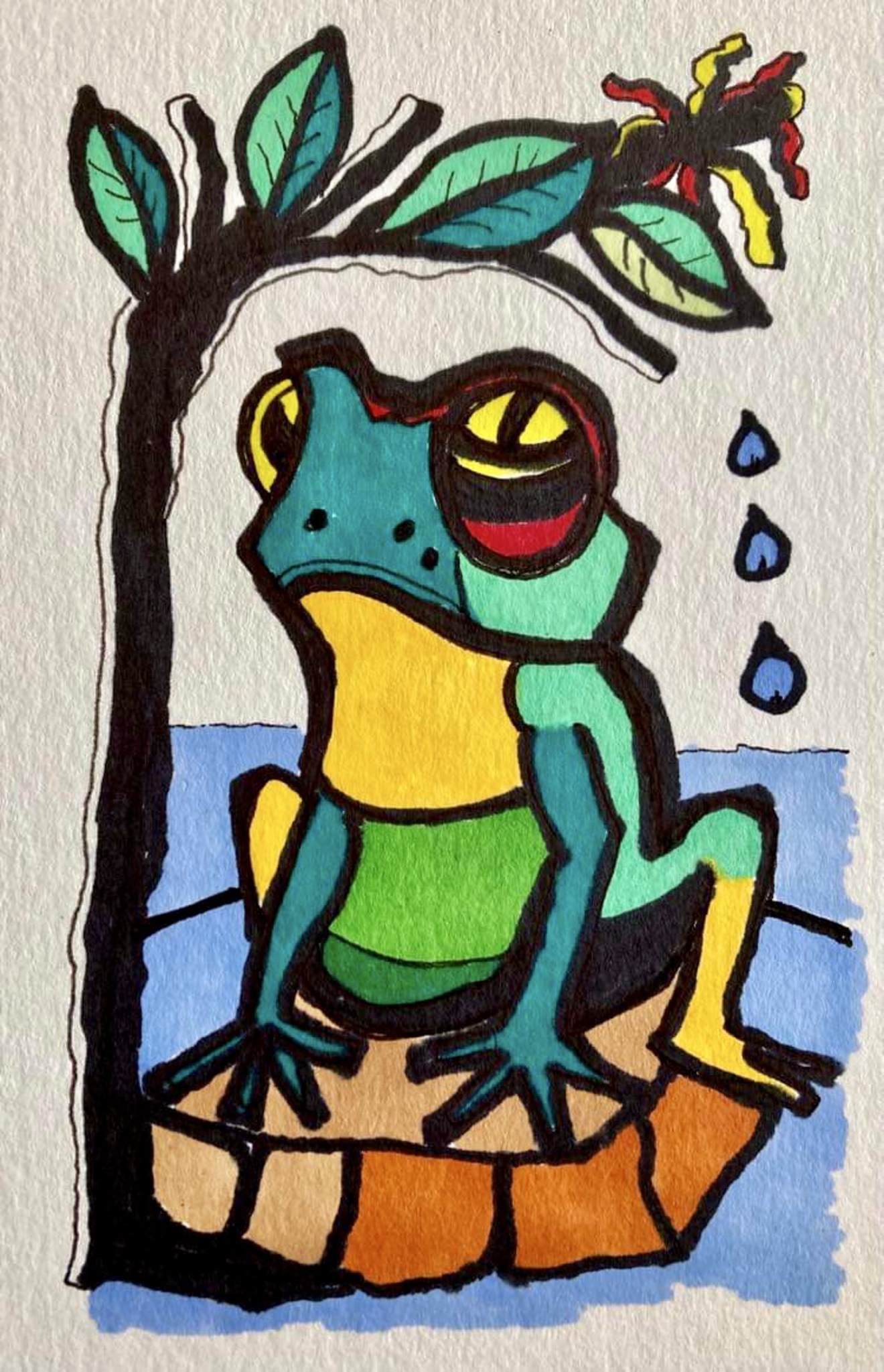 Groen Tekening Kikker Boom Kaart Vijver Correspondentie