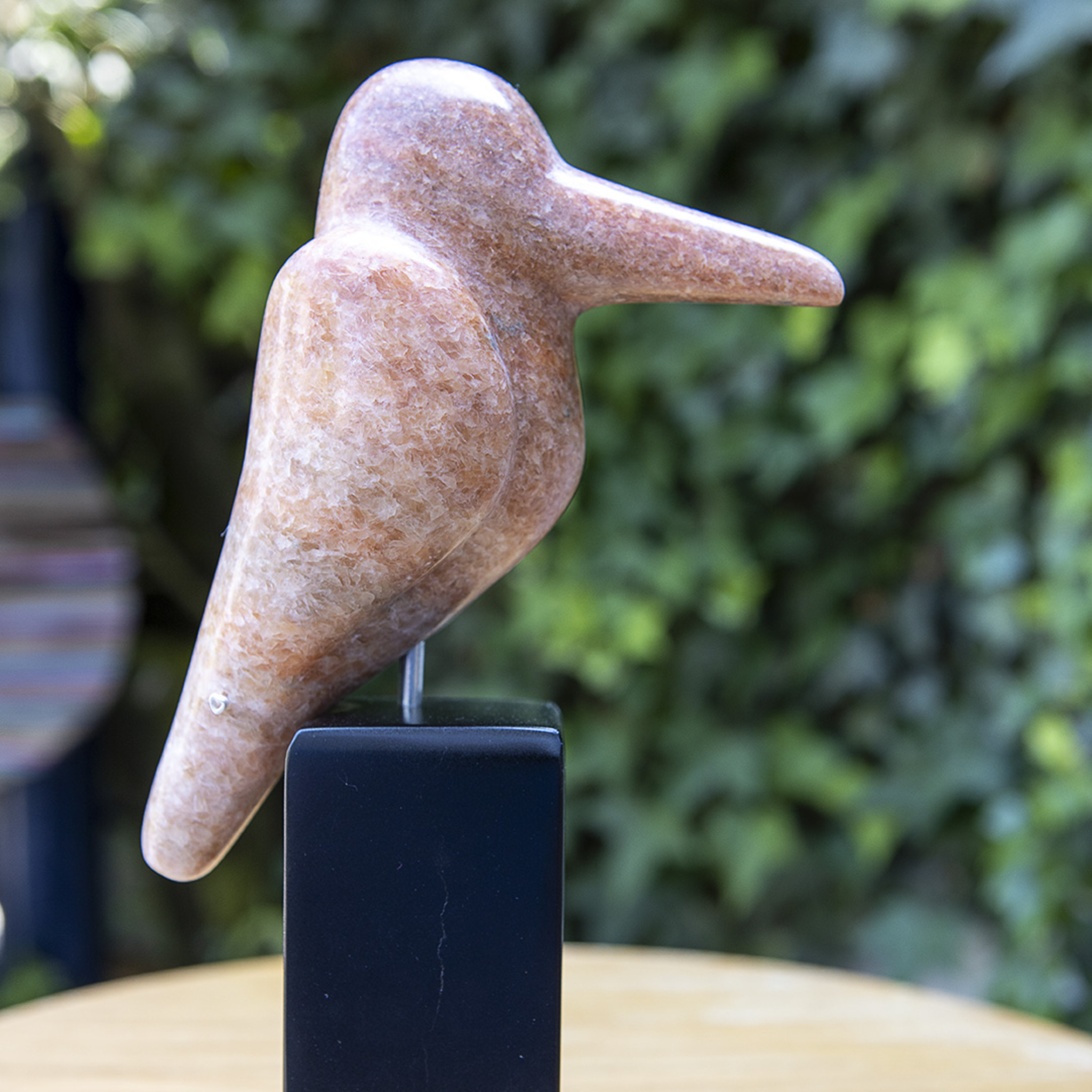 ijsvogeltje van Soedanees marmer op sokkeltje van zwart marmer