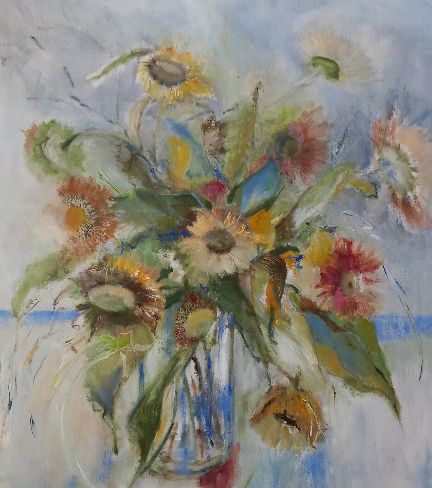 In mijn schilderijen meng ik stijlen figuratief en abstract door elkaar met als bindend element de natuur. In kleurgebruik geef ik mijn stemming weer. De technieken zijn aquarel, olieverf en acryl.