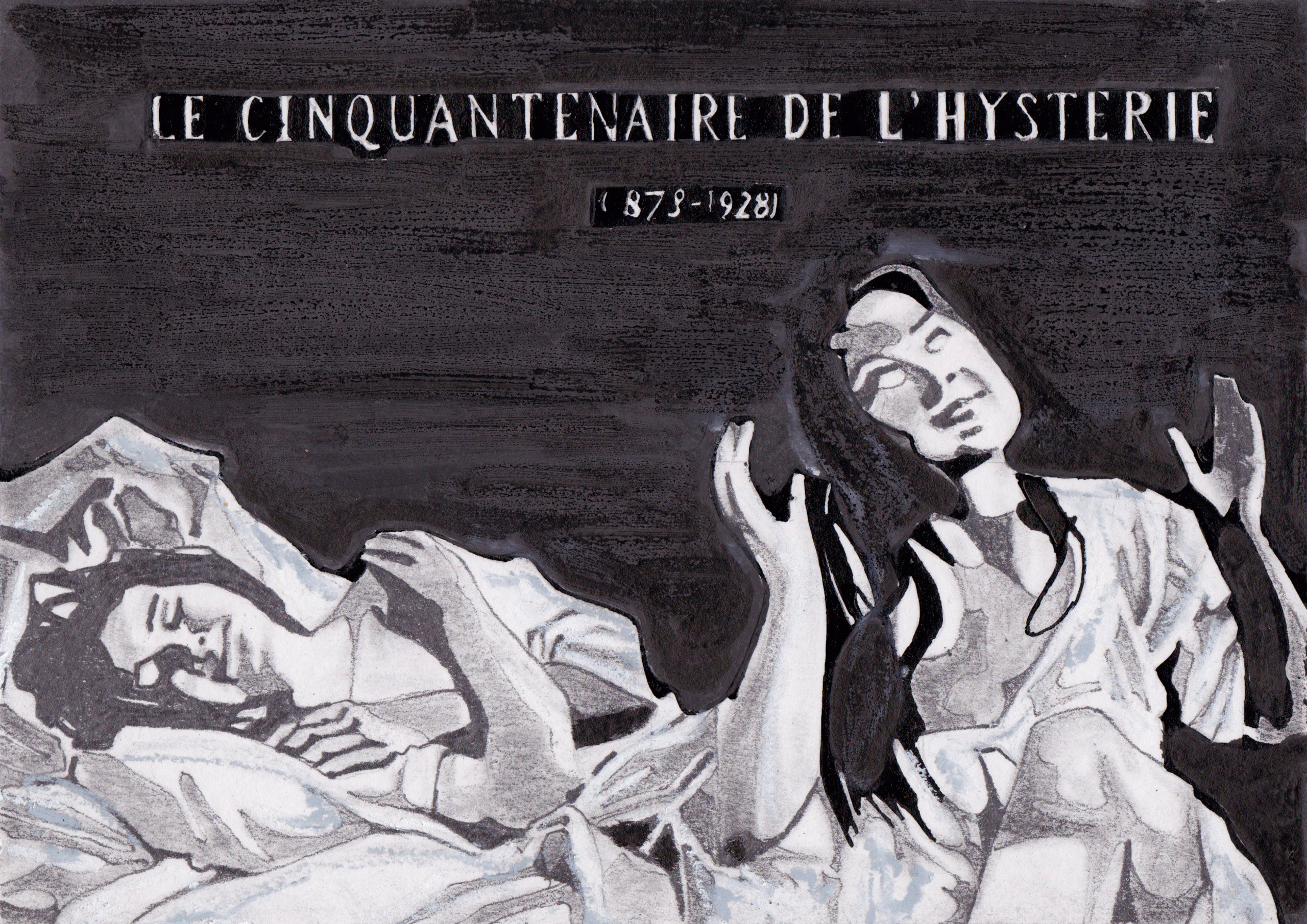 Dit beeld is gebaseerd op twee foto's afkomstig uit het boek "Iconographie photographique de la Salpêtrière" uit 1878, geschreven door de Franse neuroloog en patholoog Jean-Martin Charcot. Hij onderzocht het fenomeen hysterie en gebruikte daarvoor de methode hypnose. Een vorm van wetenschap die we nu waarschijnlijk als oneigenlijk zouden beschouwen. De dame op de foto is waarschijnlijk Louise Augustine Gleizes, een vrouw getekend door een verleden vol geweld en misbruik, die later een vrijwel naamloos bestaan zou leiden als het een hysterica opgenomen in een gesticht.