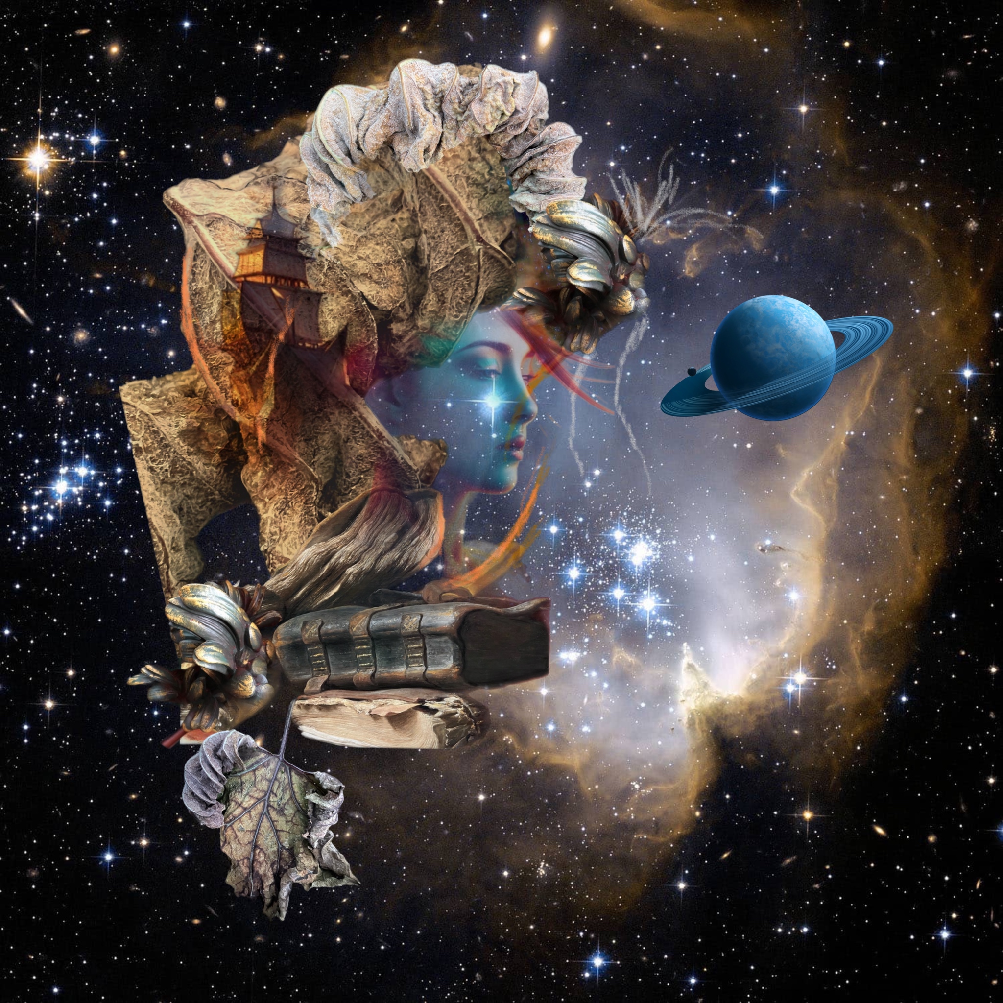 Dit is no 3 uit de serie Remembrance. Een surrealistische voorstelling waarin een vrouwengezicht (AL) is verwerkt.