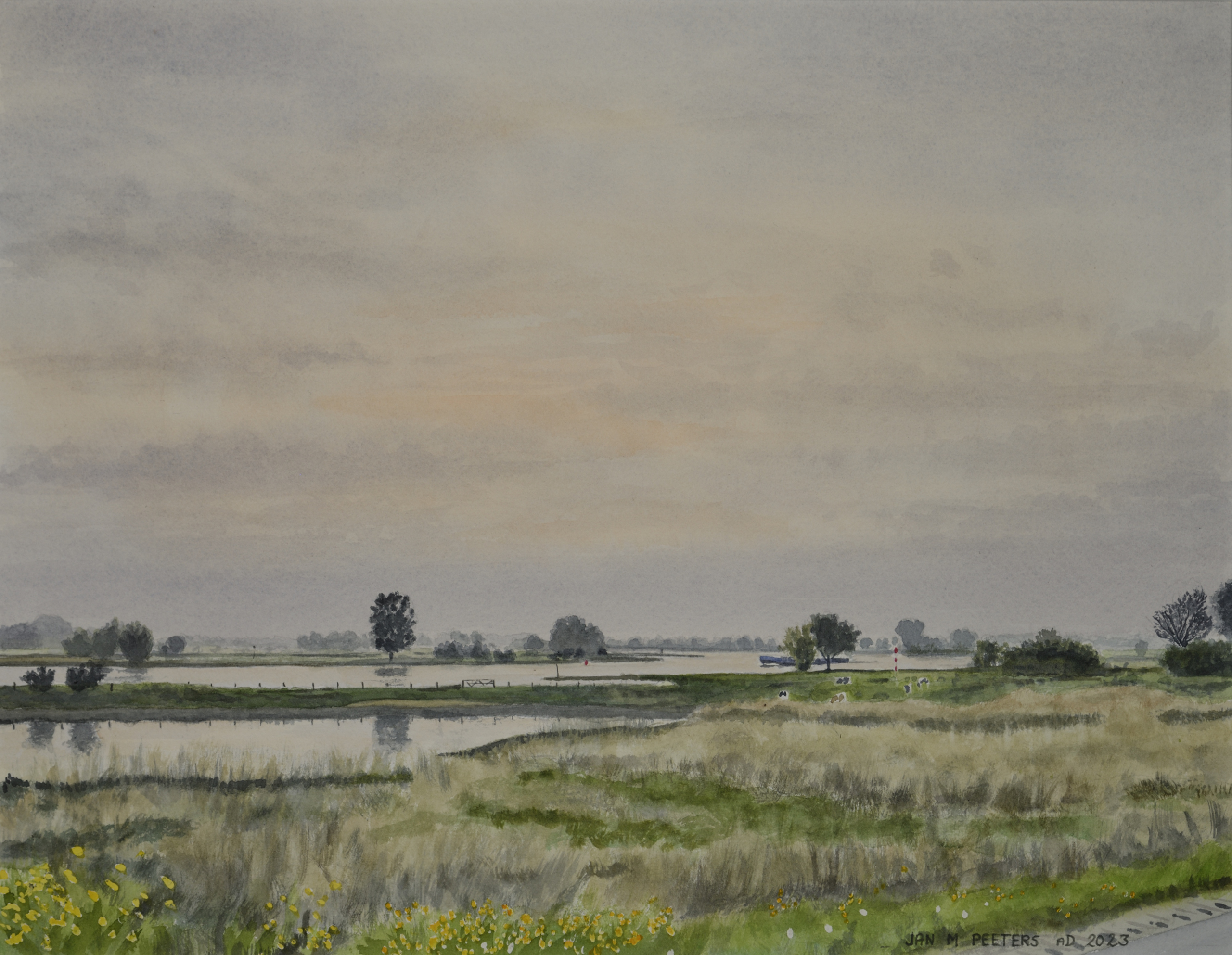 Het rivierenland biedt altijd weer boeiende vergezichten, zoals hier rond de Lek bij Lexmond.