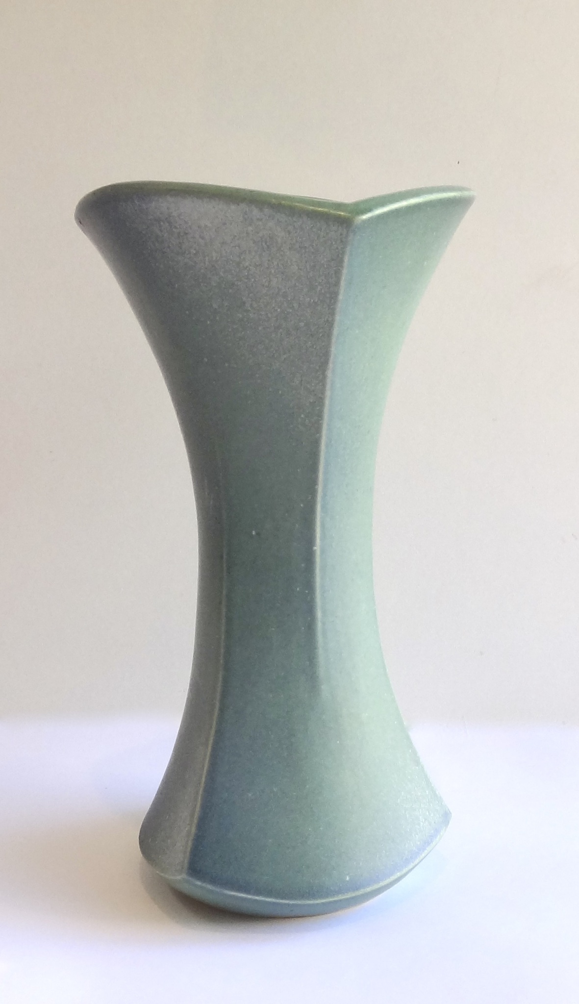 De globale vorm van deze vaas is die van een diabolo. Onderkant en bovenkant zijn twee driehoeken, maar verdraaid ten opzichte van elkaar.