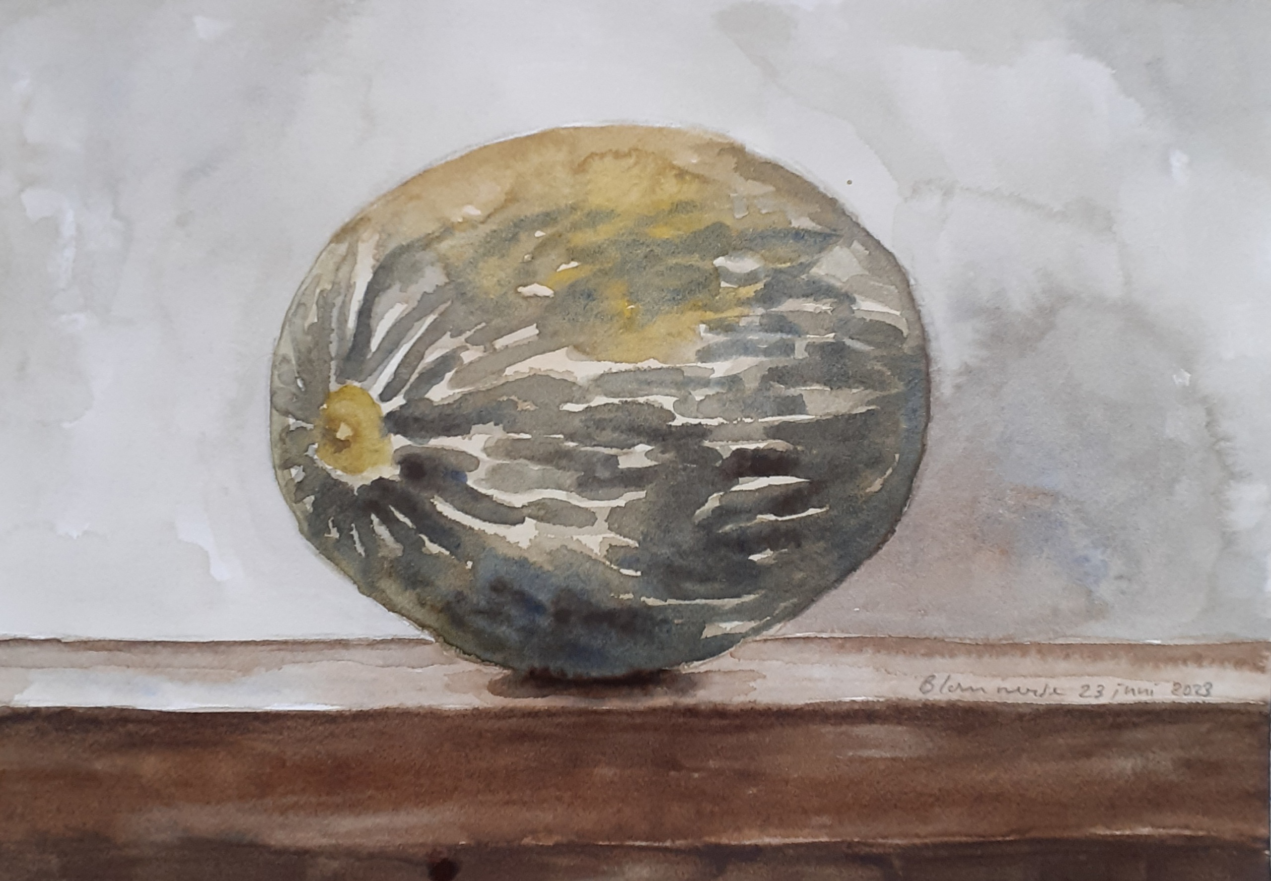 Aquarel van een piel de sapo (paddenhuid) meloen